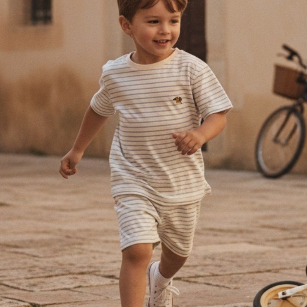 Set Famo je vyroben z lehké organické bavlny a navržen pro každodenní pohodlí ve školce, škole i při hře venku. Tričko má do velikosti 18 měsíců patentky na levém rameni pro snadnější oblékání.