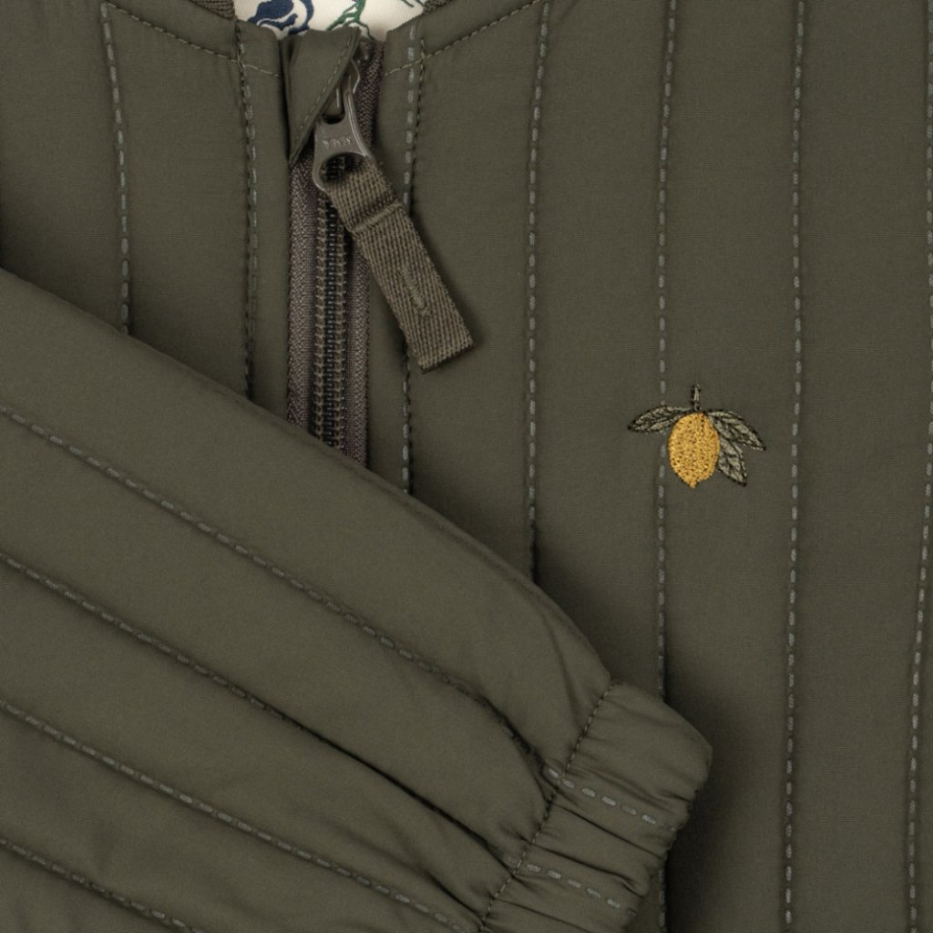 Lehká, ale hřejivá zateplená kvalita poskytuje komfort po celý den, zatímco vodoodpudivá ekologická úprava chrání před nepříznivým počasím. Díky jednoduché rovné siluetě se snadno obléká a skvěle funguje samostatně i jako dodatečná vrstva pod teplejší oblečení v opravdu studených dnech. Nezbytný kousek do dětského šatníku pro jesle, školku i školu.