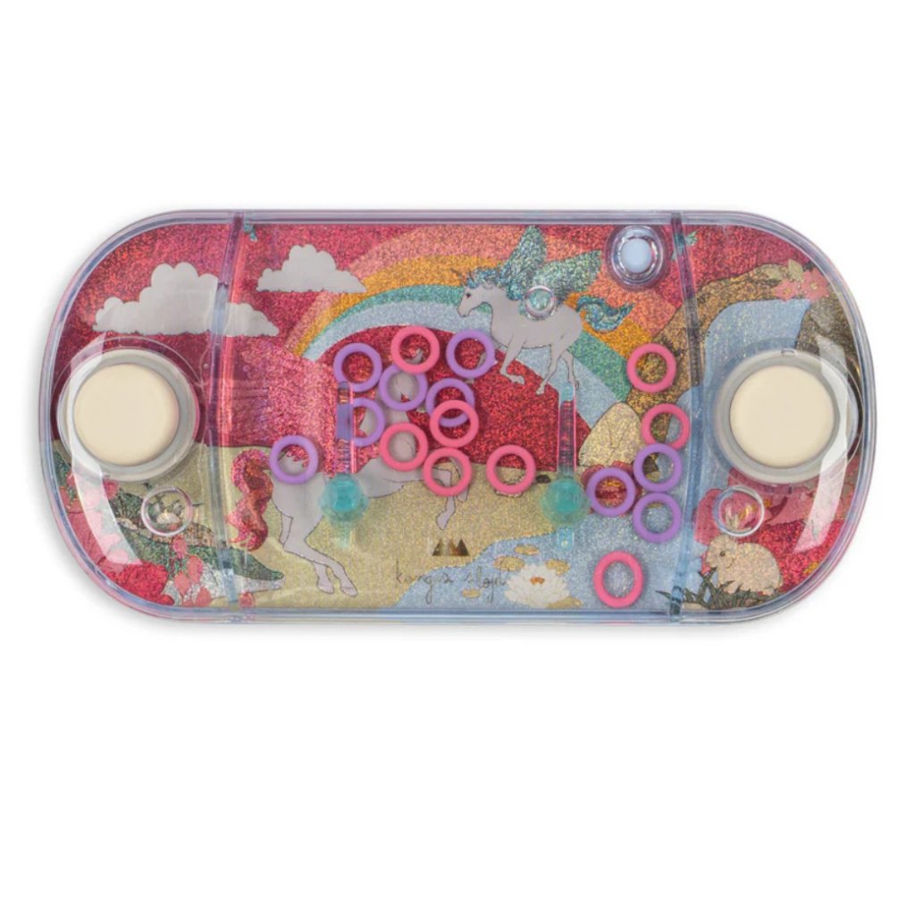 Vodní hra s kroužky zabaví děti jednoduchým, ale chytlavým principem: stiskem tlačítek rozpohybují barevné kroužky a snaží se je navléknout na plovoucí kolíky. Díky kompaktnímu formátu je ideální na cesty i na klidné chvíle doma a nenápadně podporuje soustředění a jemnou motoriku.