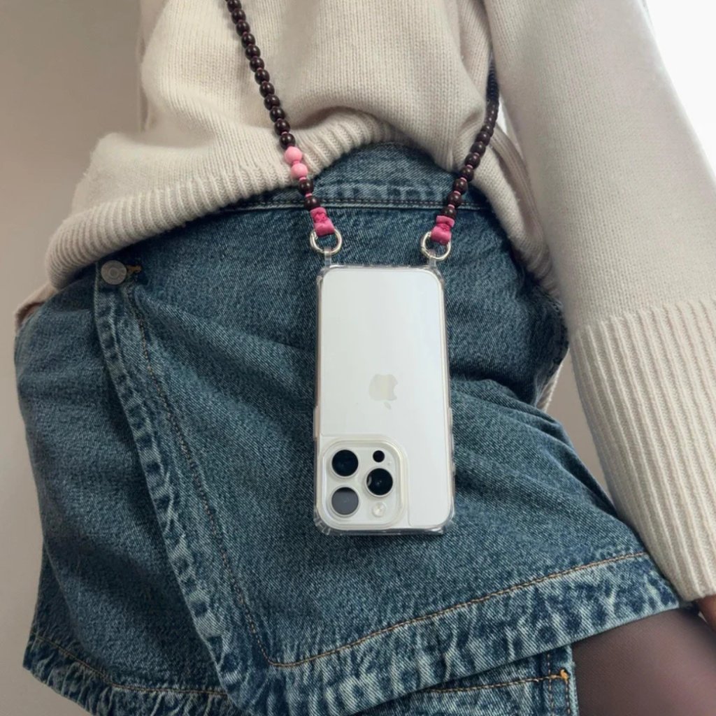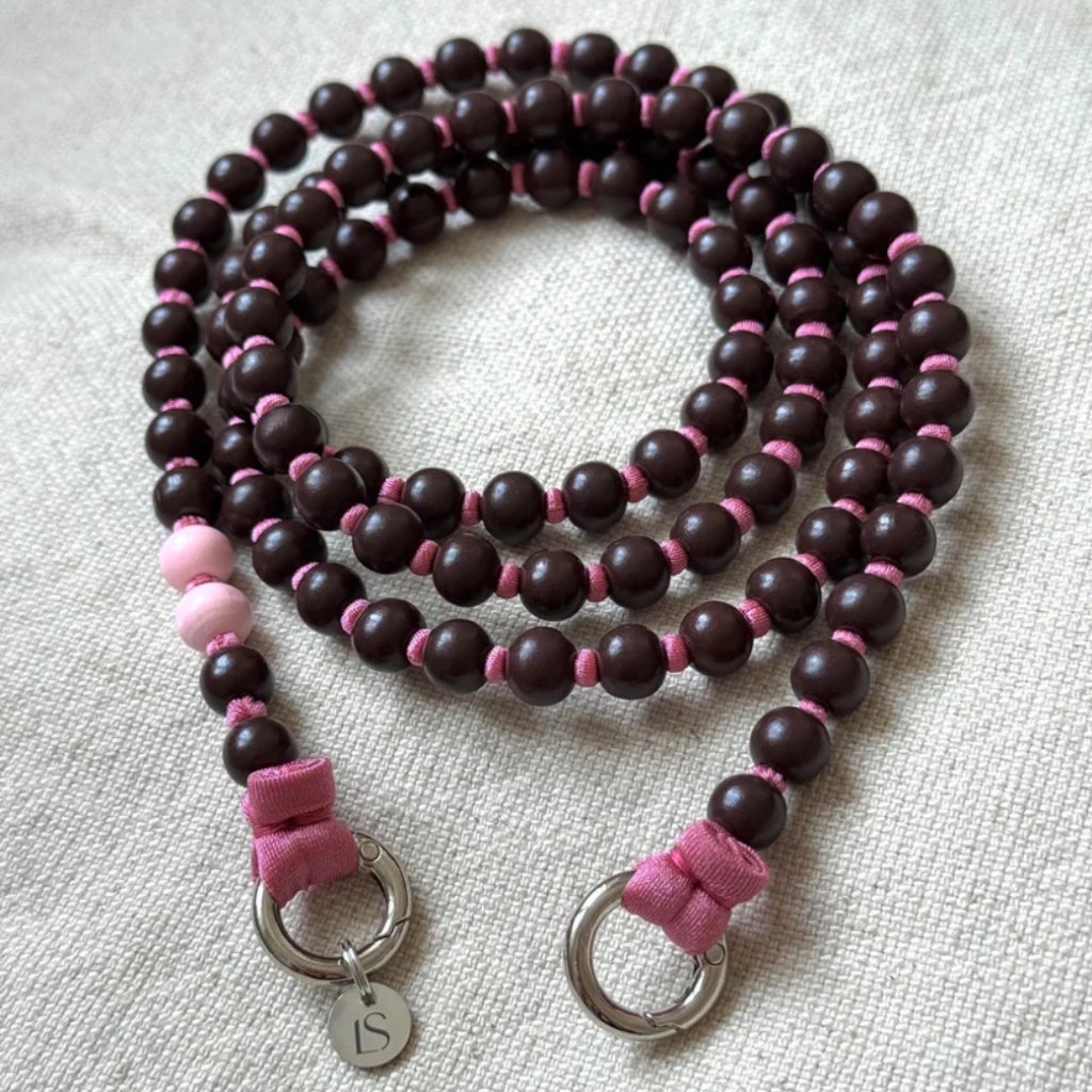 LE STUDIO Korálkový popruh na telefon dlouhý - hnědá a růžová