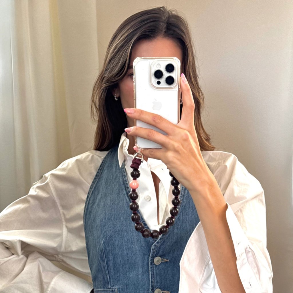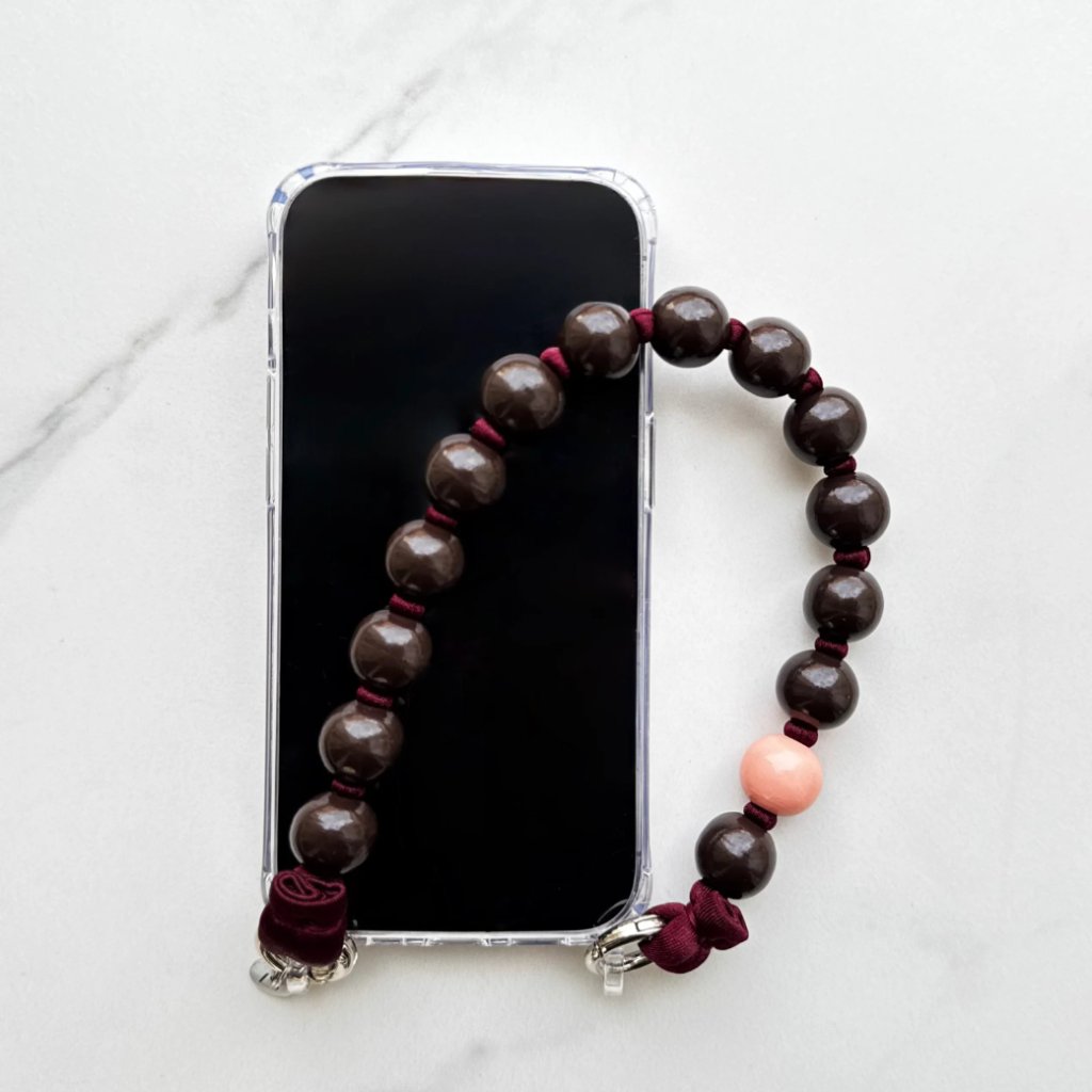 LE STUDIO Mini korálkový popruh na telefon – hnědá a burgundy