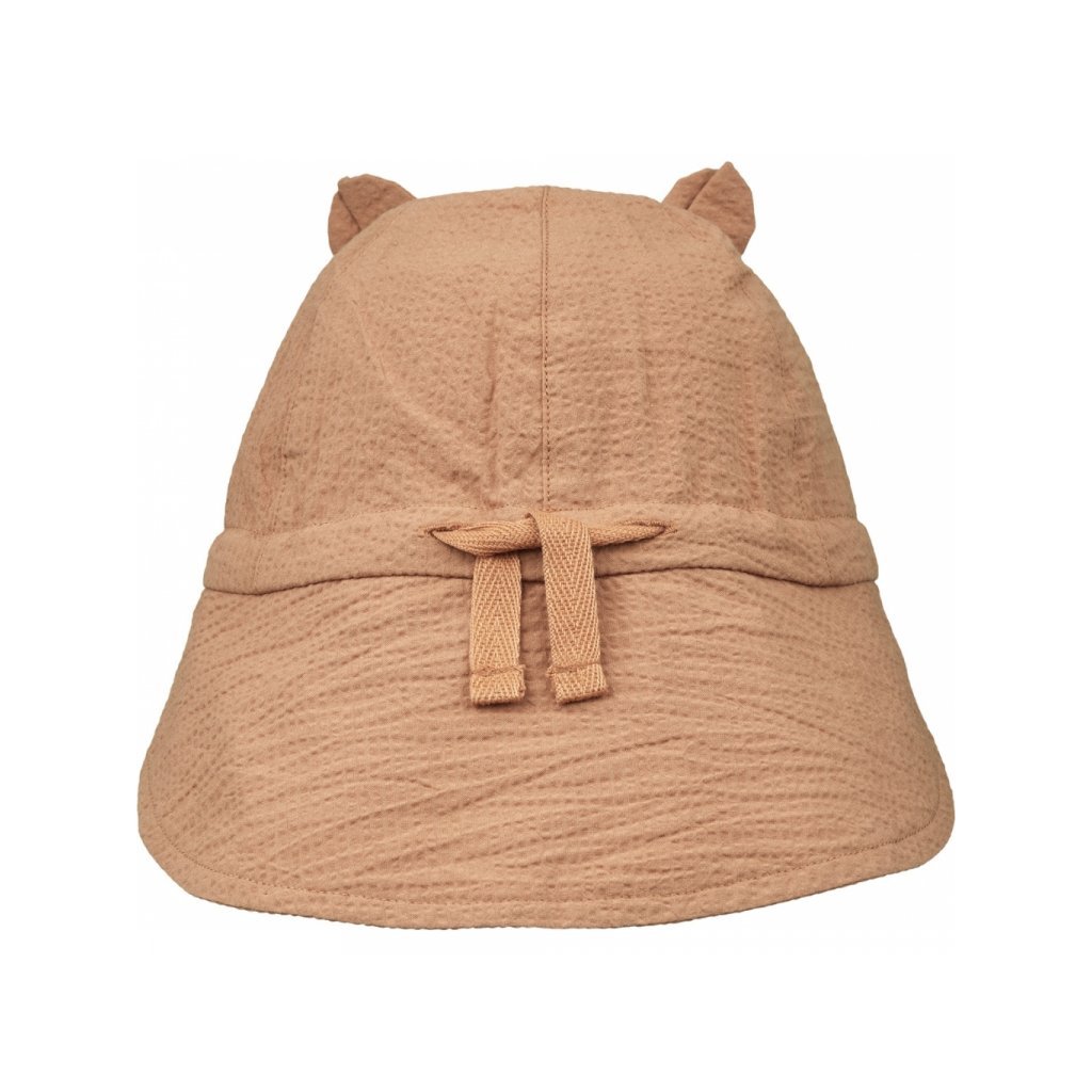 Sluneční klobouček s roztomilými oušky a ochranou krku. Lehký, prodyšný a rychleschnoucí materiál - 100% bavlna. Stahovací šňůrka pomáhá dokonalému uchycení.