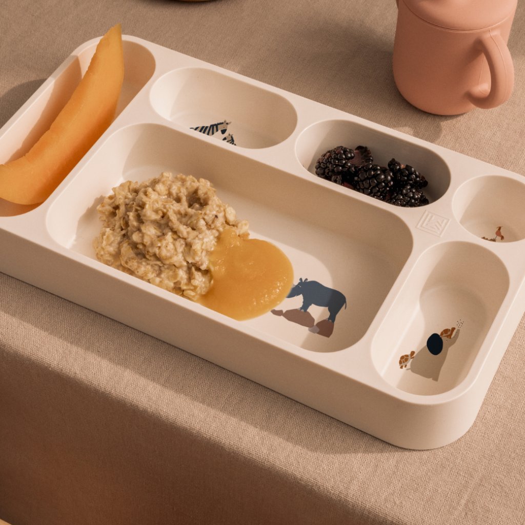 S myšlenkou na zvídavé malé jedlíky je dělený talíř MOSU navržen tak, aby nabízel šest samostatných přihrádek. Díky tomu můžete svému dítěti servírovat různé druhy jídla a nechat ho objevovat chutě po svém. Tento praktický pomocník k jídlu je stohovatelný, vhodný do myčky a podpoří vašeho malého gurmána při poznávání nových jídel.