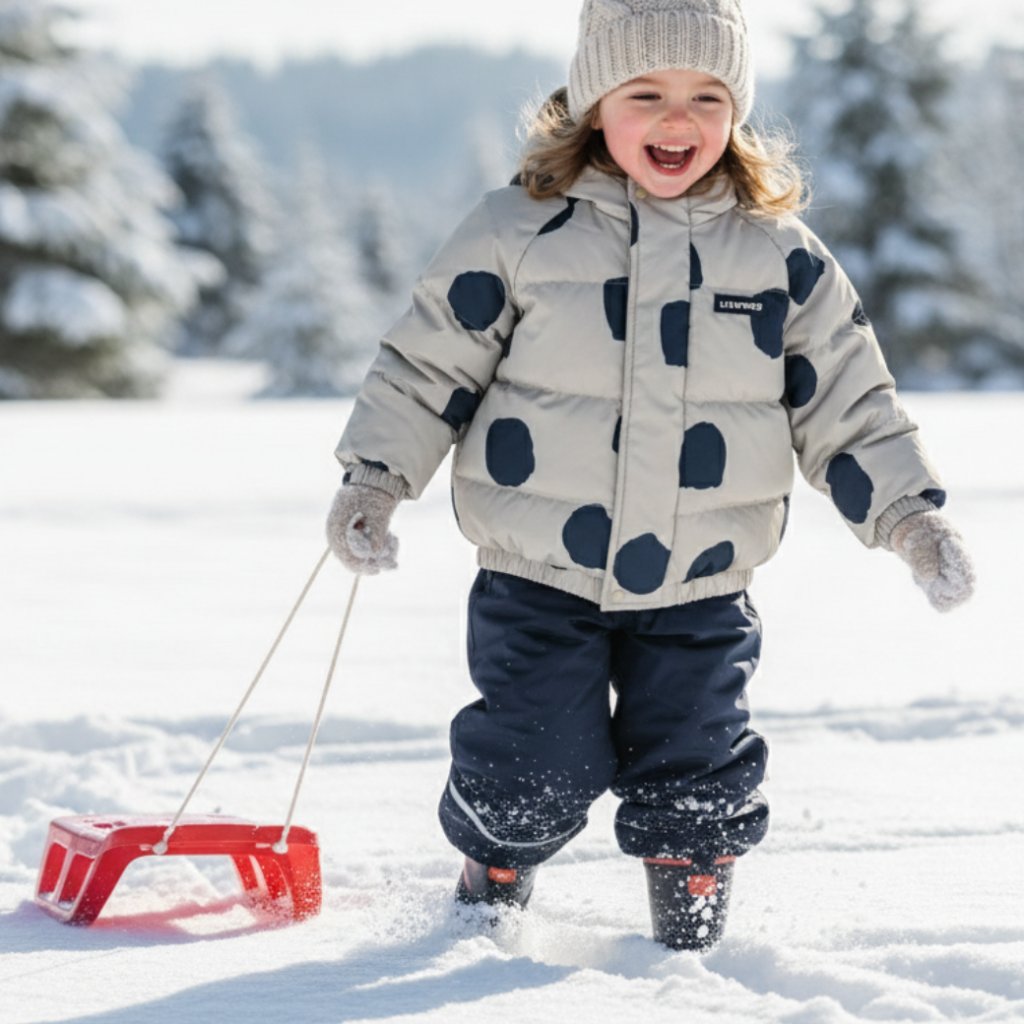 Nadčasová dětská bunda ADELINA je navržena pro maximální hřejivost a komfort během chladných dnů. Má recyklovaný svrchní materiál a výplň z odpovědně získaného peří a prachového peří. Roztomilé detaily jako zvířecí ouška na kapuci, fleecové kapsy a jemné zapínání na suchý zip dělají z této bundy oblíbený zimní kousek pro malé objevitele.