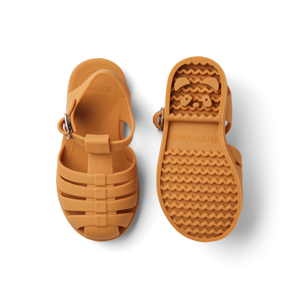 Flexibilní, lehoučké sandálky v krásné barvě od dánské značky Liewood. Sandálky mají na podrážce obrázek pandy a tak zanechávají na měkkém povrchu veselé stopy. Ideální na pláž, protože PVC neabsorbuje žádnou vodu. Snadno se čistí. Nastavitelná přezka s tlačítkem. Snadné vyzouvání a nazouvání.