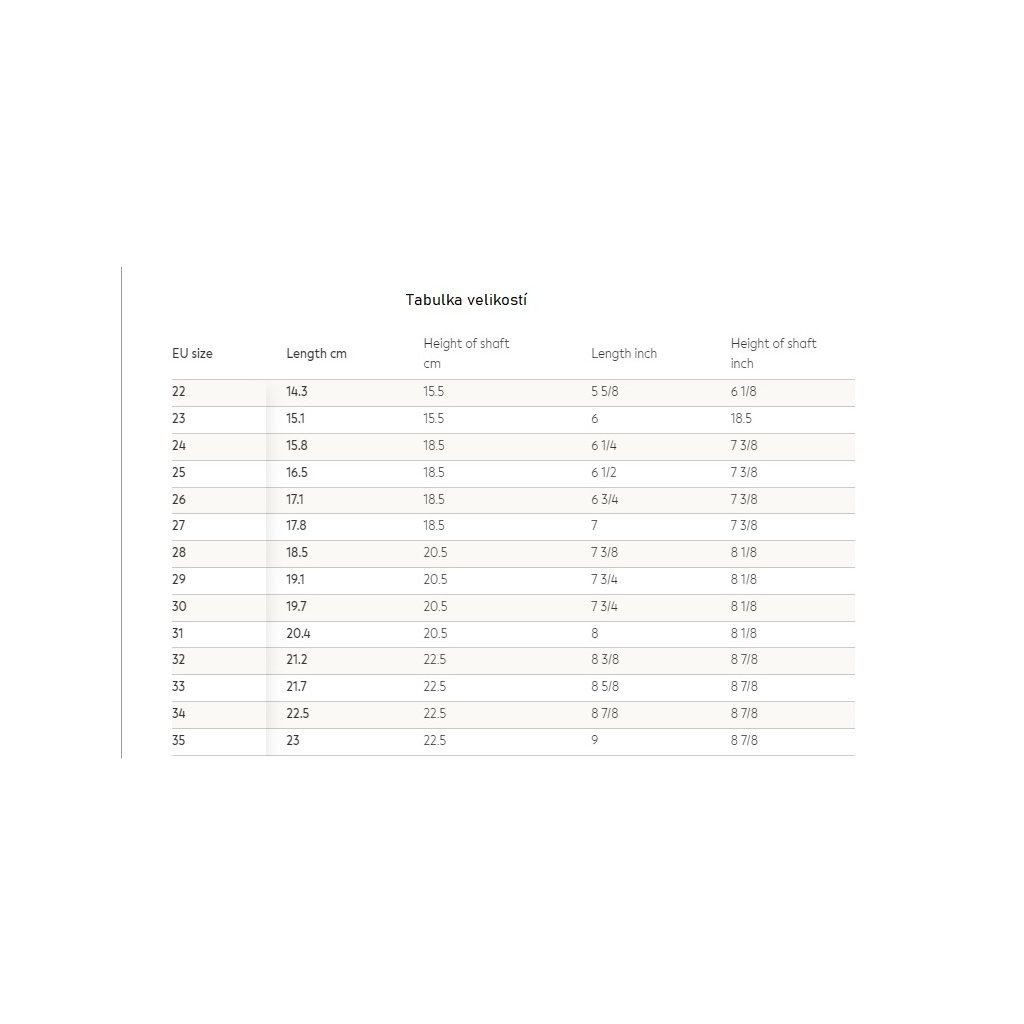 U této obuvi doporučujeme, abyste při určování správné velikosti nepočítali s příliš velkým nadměrkem. Holínky do deště mají být přirozeně volnější než ostatní boty, ale ne příliš volné, aby dítěti nepadaly.