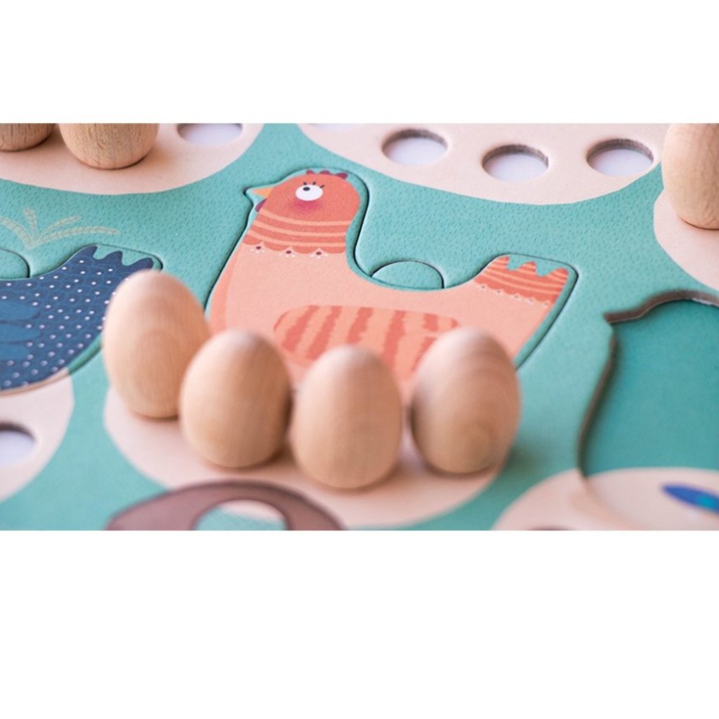 Hry se zvířecími motivy jsou výborné pro rozvoj slovní zásoby i vyprávění. Děti si mohou pojmenovávat postavy (liška, slepice, vejce), trénovat jednoduché věty („Liška jde do kurníku.“) a rozvíjet dialog („Co uděláme, aby vejce zůstala v bezpečí?“). Rodiče mohou vést hru otázkami, které podporují porozumění i spontánní vyjadřování.