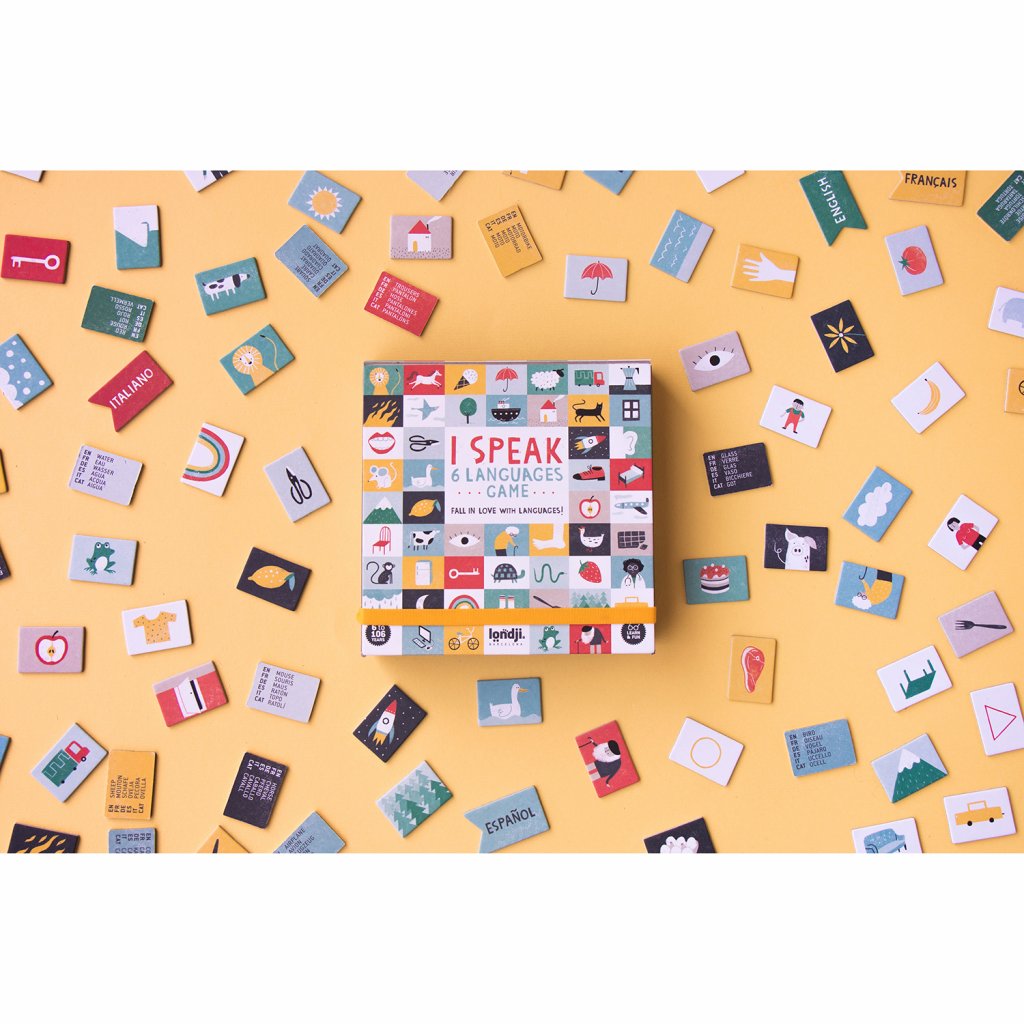 Barevná karetní hra, se kterou se děti snadno a zábavně seznámí s němčinou, angličtinou, francouzštinou, španělštinou, italštinou a katalánštinou. Obrázky a slova se propojují do přirozeného učení, které baví celou rodinu.