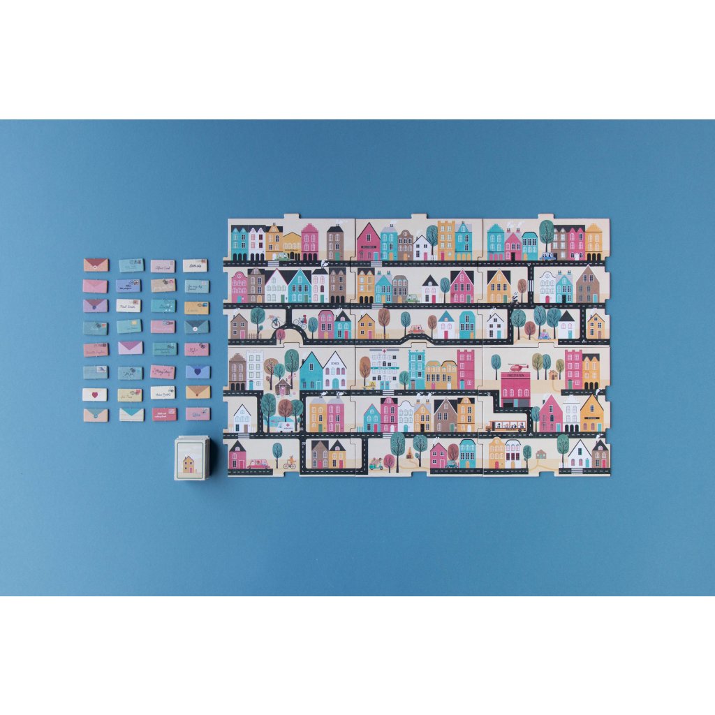 Hry s příběhem (pošťák, město, dopisy) jsou výborné pro rozvoj slovní zásoby a vyjadřování. Děti mohou popisovat, kam dopis doručí („Do červeného domu, k paní s kočárkem“) a trénovat tak větnou stavbu i přesný popis. Rodiče mohou hru obohatit otázkami: „Komu nese pošťák dopis? Kde ten dům stojí?“ – to podporuje aktivní komunikaci i porozumění.