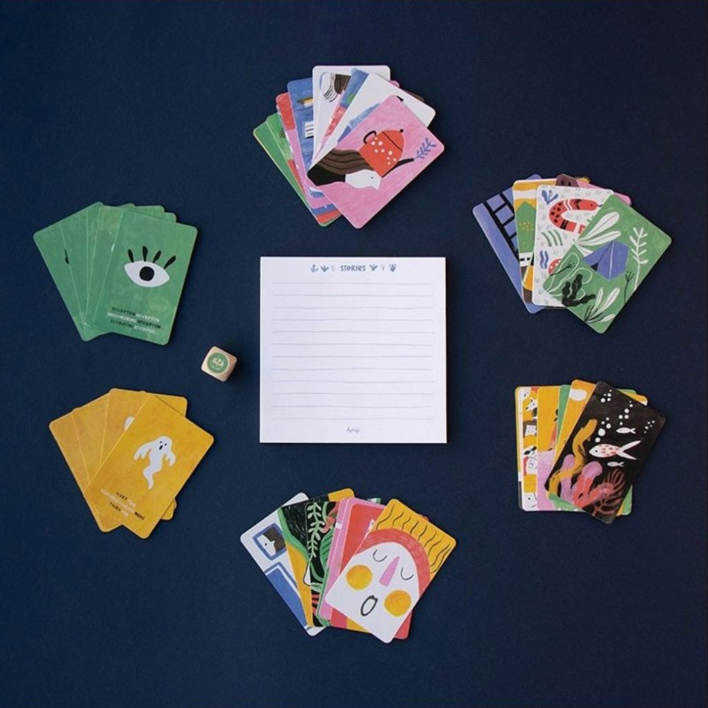 Karetní hra, ve které se naučíte psát a vyprávět příběhy kolektivně. Popusťte uzdu své fantazii pomocí obrázků jako výchozího bodu.