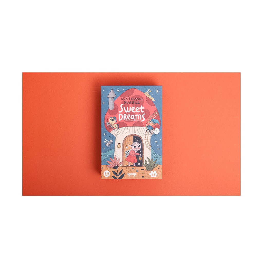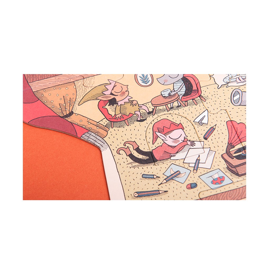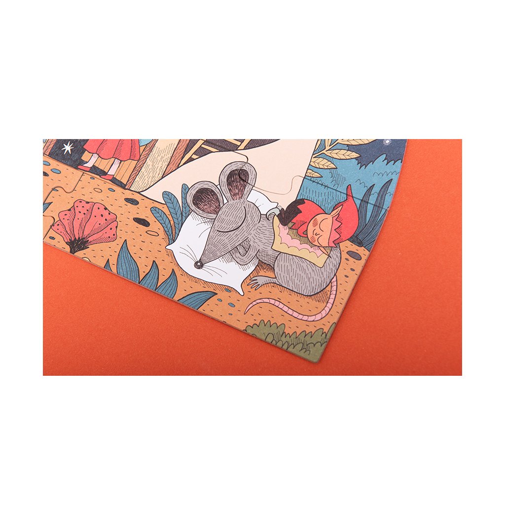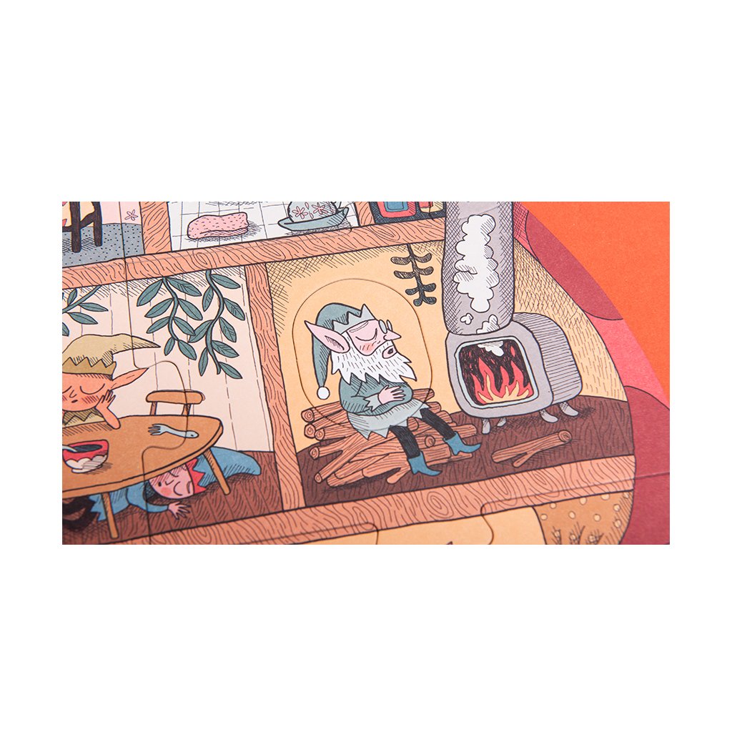 Na jedné straně najdeme vnější stranu houby a na druhé vnitřní. Jakmile bude houbový domeček (10 kusů) sestaven, bude dítě schopno vložit kusy do domečku (8 kusů), uspat různé postavičky a zároveň s nimi samo usnout. Dílky jsou velké, určené pro malé ruce.