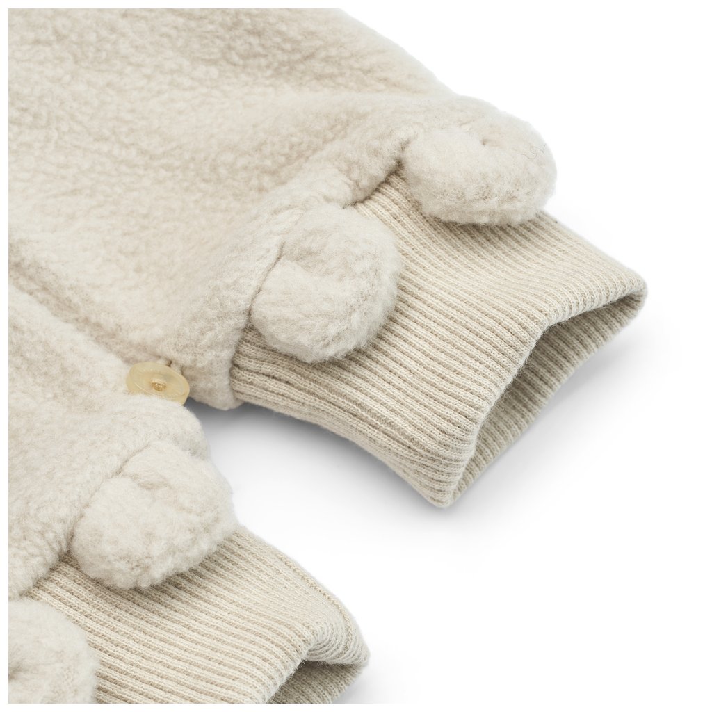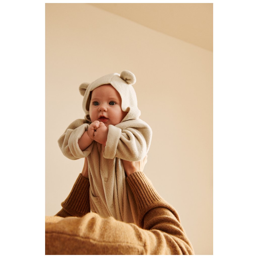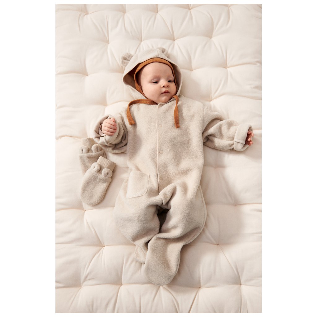 Tato dětská fleecová kombinéza je navržena pro maximální pohodlí z mimořádně měkkého materiálu. Kombinéza je dodávána s odepínacími rukavičkami pro extra teplo. Kapuce i rukavičky jsou ozdobeny roztomilými medvídkovými oušky, což dodává hravý vzhled. Snadné oblékání zajišťuje praktické zapínání na patentky v přední části.