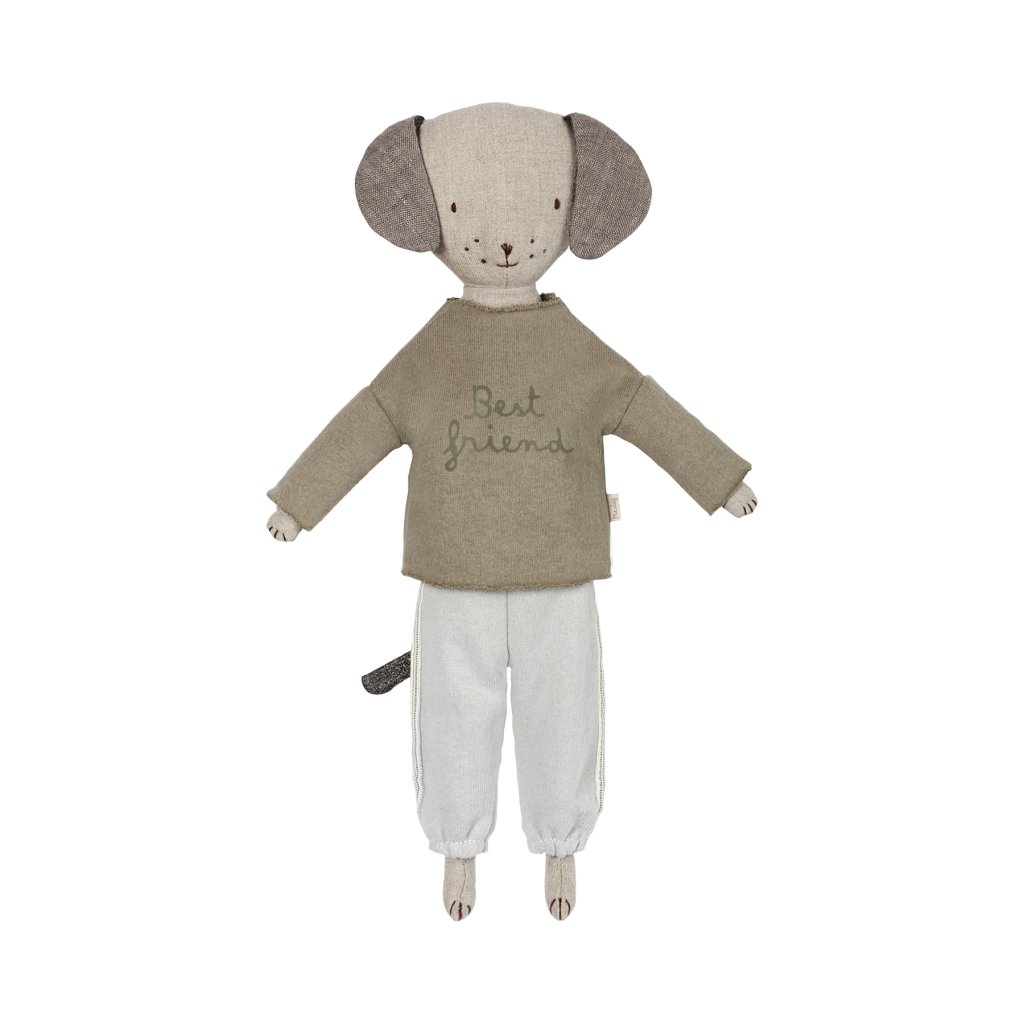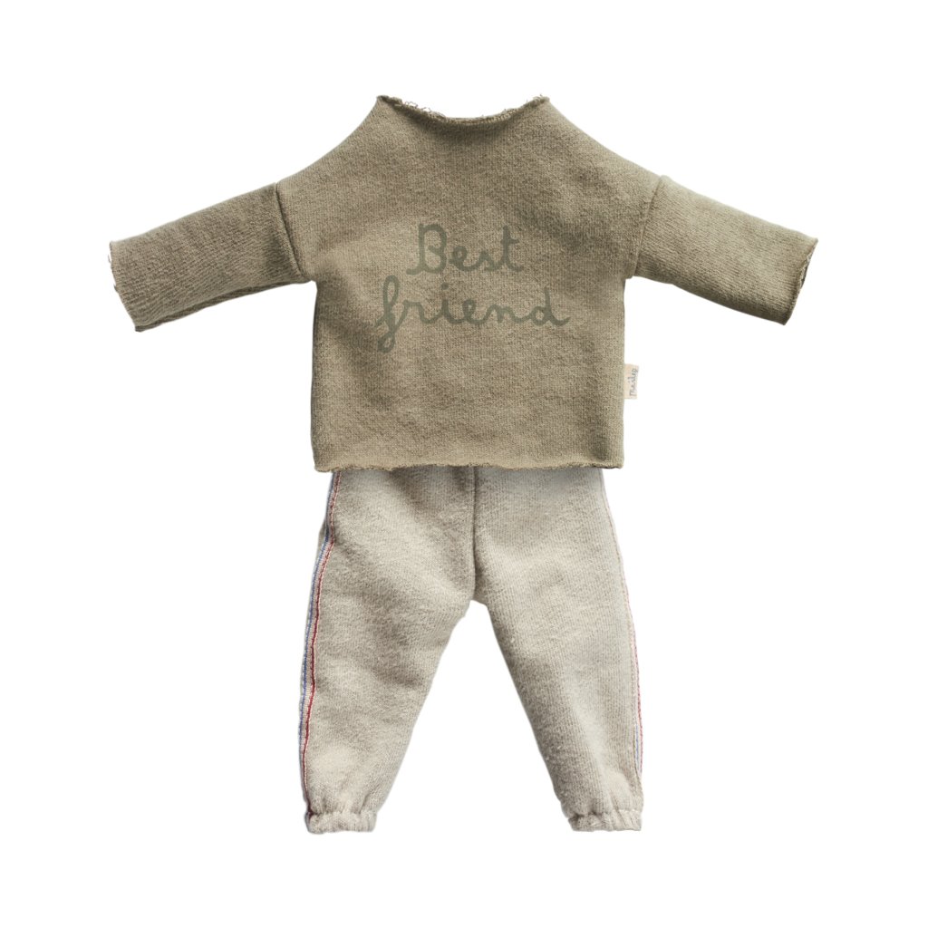 Stylová tepláková souprava pro plyšáky z edice Best Friend od Maileg je ideální pro odpočinek i hraní. Měkký materiál, volný střih a detailní nápis „Best friend“ dělají z tohoto outfitu dokonalý doplněk pro každodenní dobrodružství.