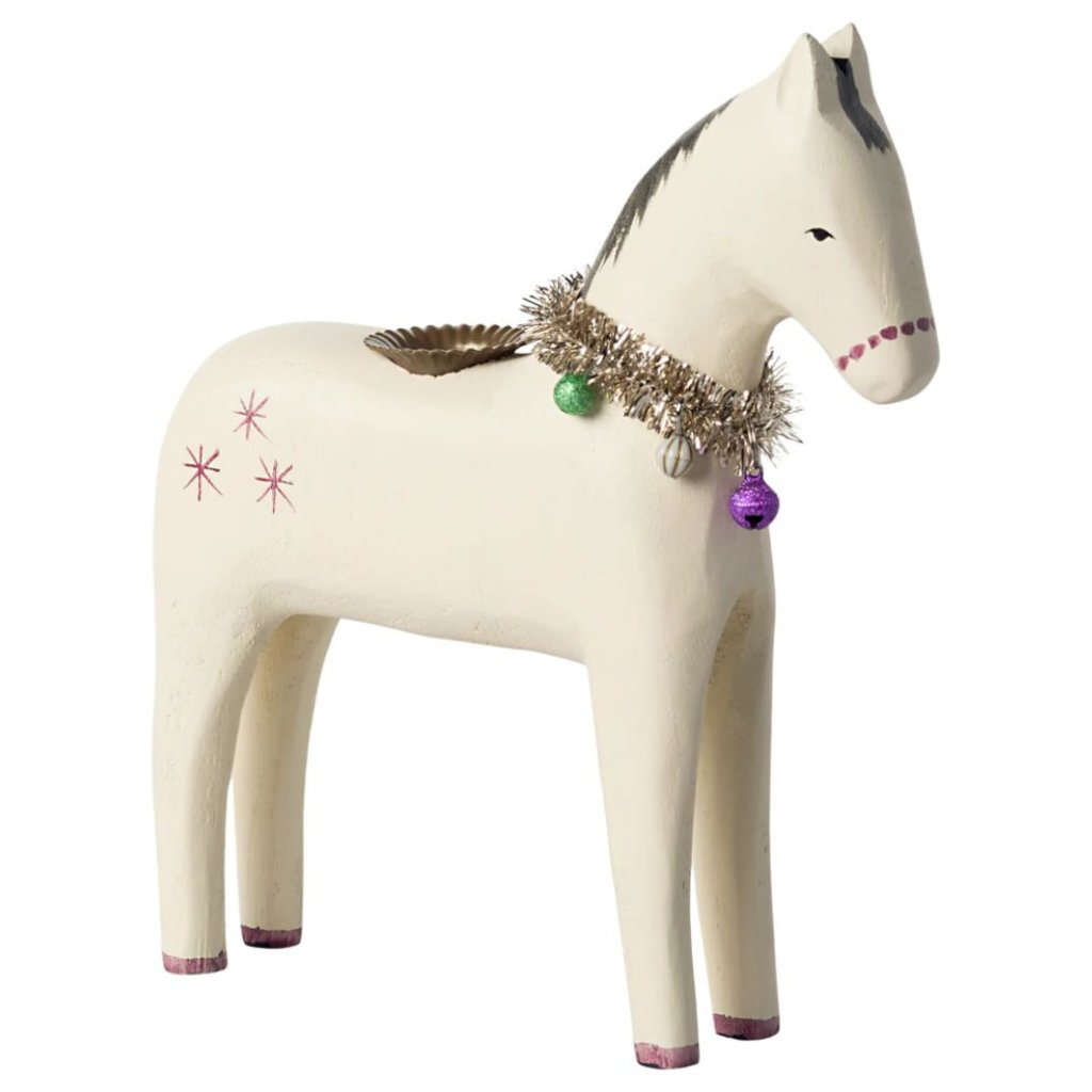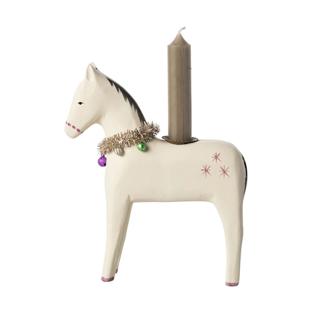 Dřevěný svícen ve tvaru koníka v menší velikosti, na jednu svíčku (není součástí).