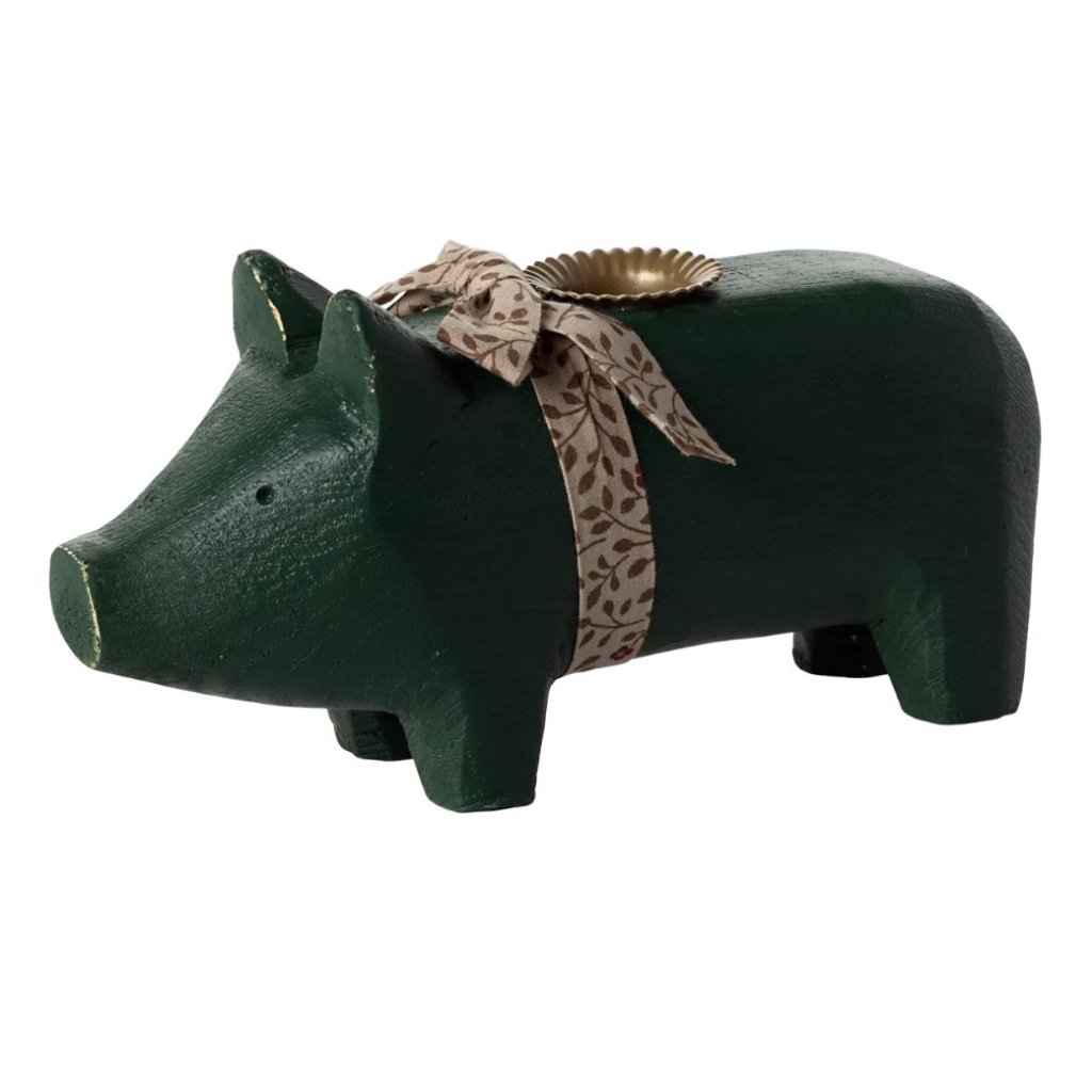 MAILEG Dřevěný svícen Prasátko medium - dark green S24
