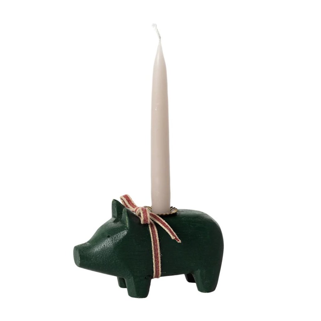 MAILEG Dřevěný svícen Prasátko small - dark green S24