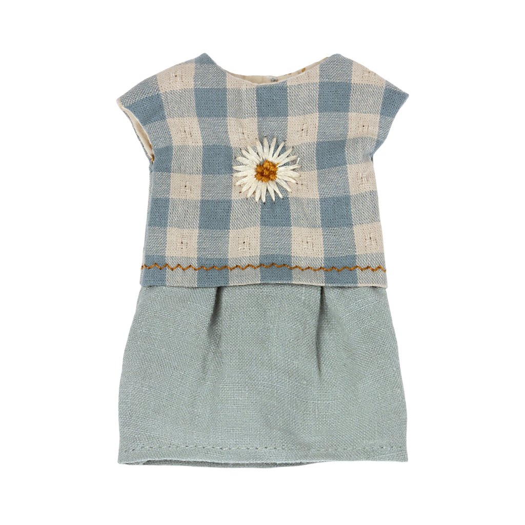 Jemné modré šaty s vyšívanou sedmikráskou přinášejí do světa Teddyho rodinky kouzlo venkova a klid letních dnů. Stylový doplněk pro Teddyho maminku z přírodních materiálů, který se skvěle hodí k dalším kouskům z kolekce Maileg.