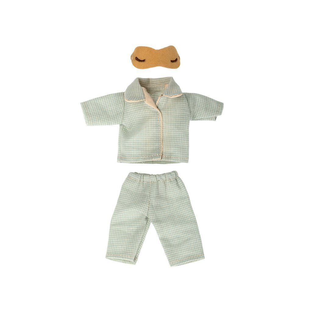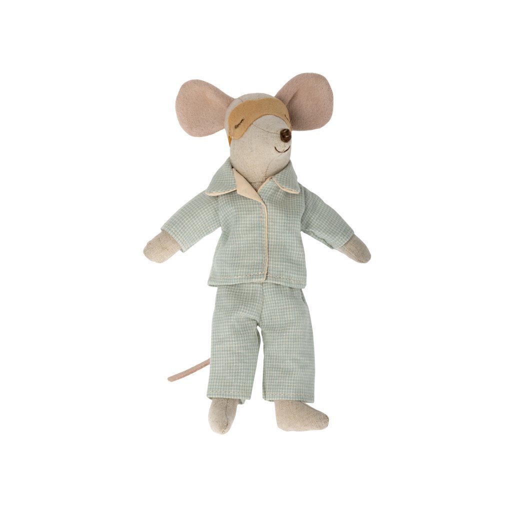 I myší tatínek si zaslouží pohodlný spánek! Tento roztomilý set obsahuje proužkované pyžamo se zapínáním a látkovou masku na spaní. Ideální doplněk do večerních scének v myším domečku, kde nesmí chybět klidné usínání po dni plném dobrodružství.