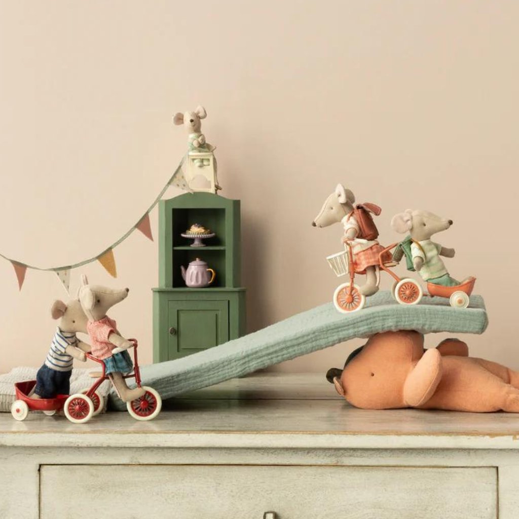Maileg jsou kouzelné hračky a dekorace z Dánska, které si získaly srdce dětí po celém světě svým jemným vintage vzhledem inspirovaným romantickou Francií. Myšky, zajíci, kočky i další zvířátka jsou s láskou ručně šité do nejmenšího detailu. Ve světě Maileg se krabička od sirek promění v postýlku a dětská fantazie má volný prostor – od hraček až po nábytek pro jejich pohádkové domovy.