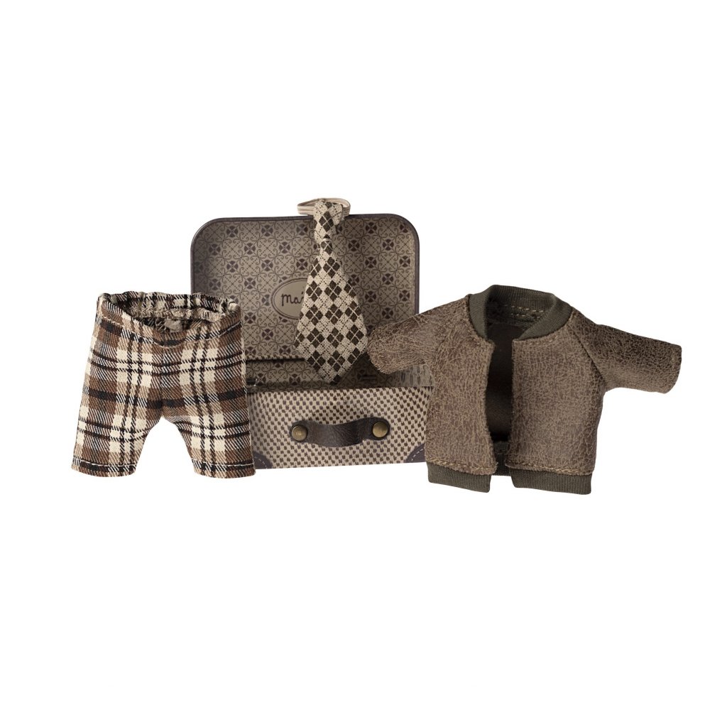 MAILEG Oblečení pro myšku v kufříku - Bunda s kalhoty a kravatou - dědeček
