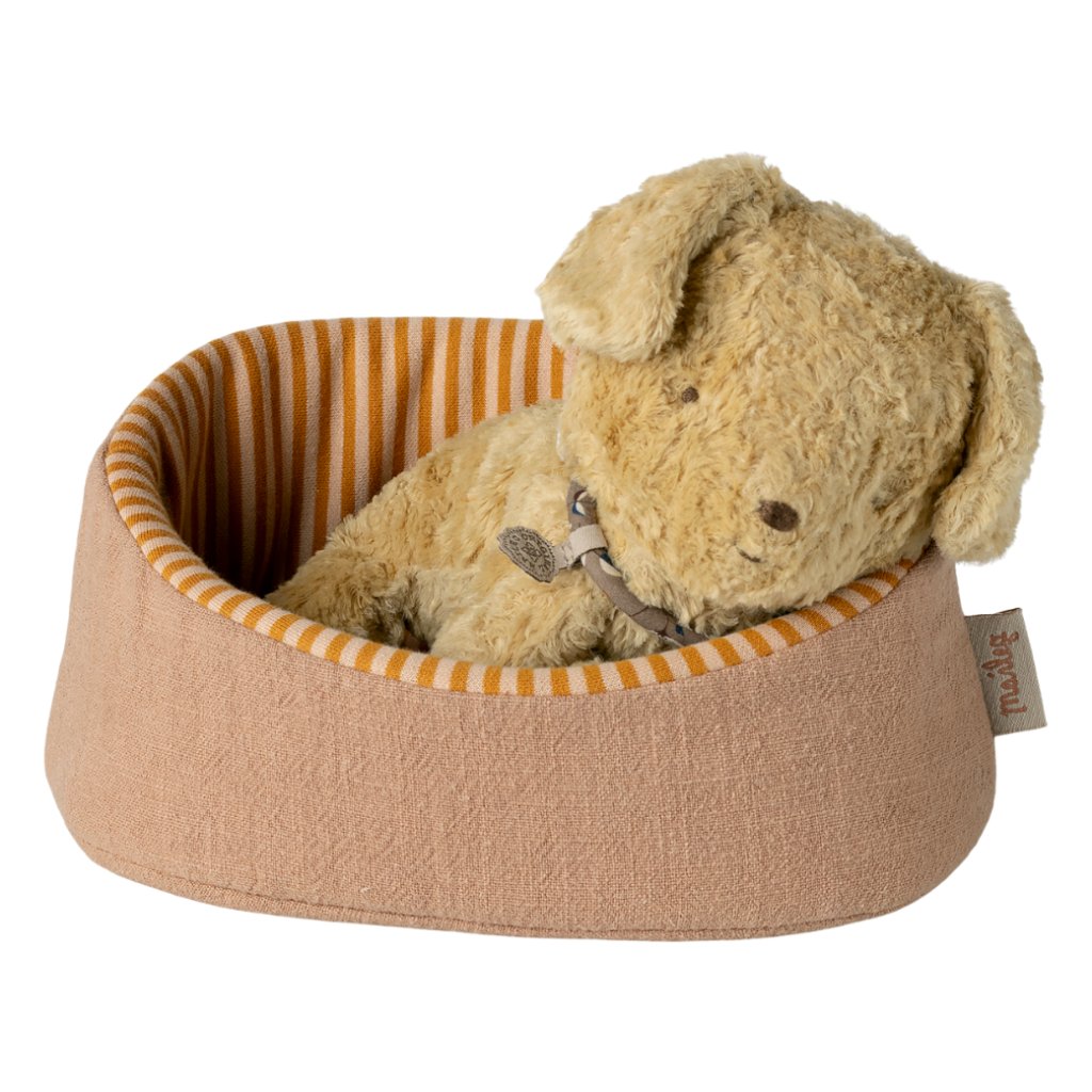 Hebký pelíšek v jemném odstínu je ideální pro chvíle odpočinku malých zvířecích kamarádů. Velikostí perfektně sedí pro malé pejsky Maileg a snadno se kombinuje s dalšími doplňky, které rozvíjejí hru a vyprávění. Měkký textil láká k péči, ukládání ke spánku i tichým domácím scénám.