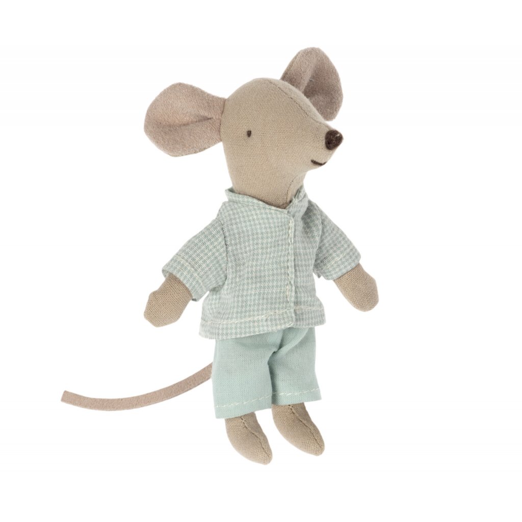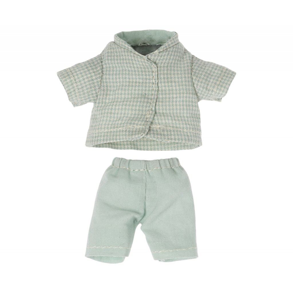 Roztomilé pyžamko pro malého myšího brášku z kolekce Maileg je ideální na večerní uspávání a sny plné dobrodružství. Jemná světle zelená látka s decentním vzorem působí něžně a útulně – přesně tak, jak má vypadat pyžamko pro myšku připravenou k postýlce.