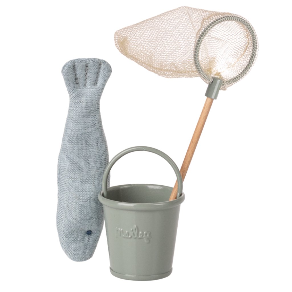 Rybářský set pro myší rodinku je krásným doplňkem, který rozšíří hru o nové dobrodružství. Síťka, rybičky a kyblík zvou děti k vytváření vlastních herních scén, vyprávění a klidné, fantazijní hře, kde se „úlovek“ nosí domů po úspěšném rybolovu.
