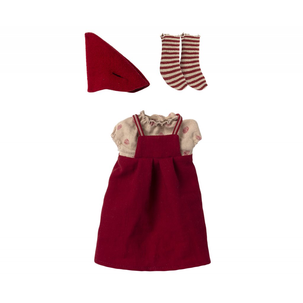 Elegantní vánoční šaty pro myšku velikosti Medium promění každou myšku v roztomilou sváteční dámu. V setu najdete tmavě červené šaty s detaily, pruhované ponožky a čepičku ladící s vánoční atmosférou. Ideální pro zimní příběhy, pečení cukroví i slavnostní večery u stromečku.