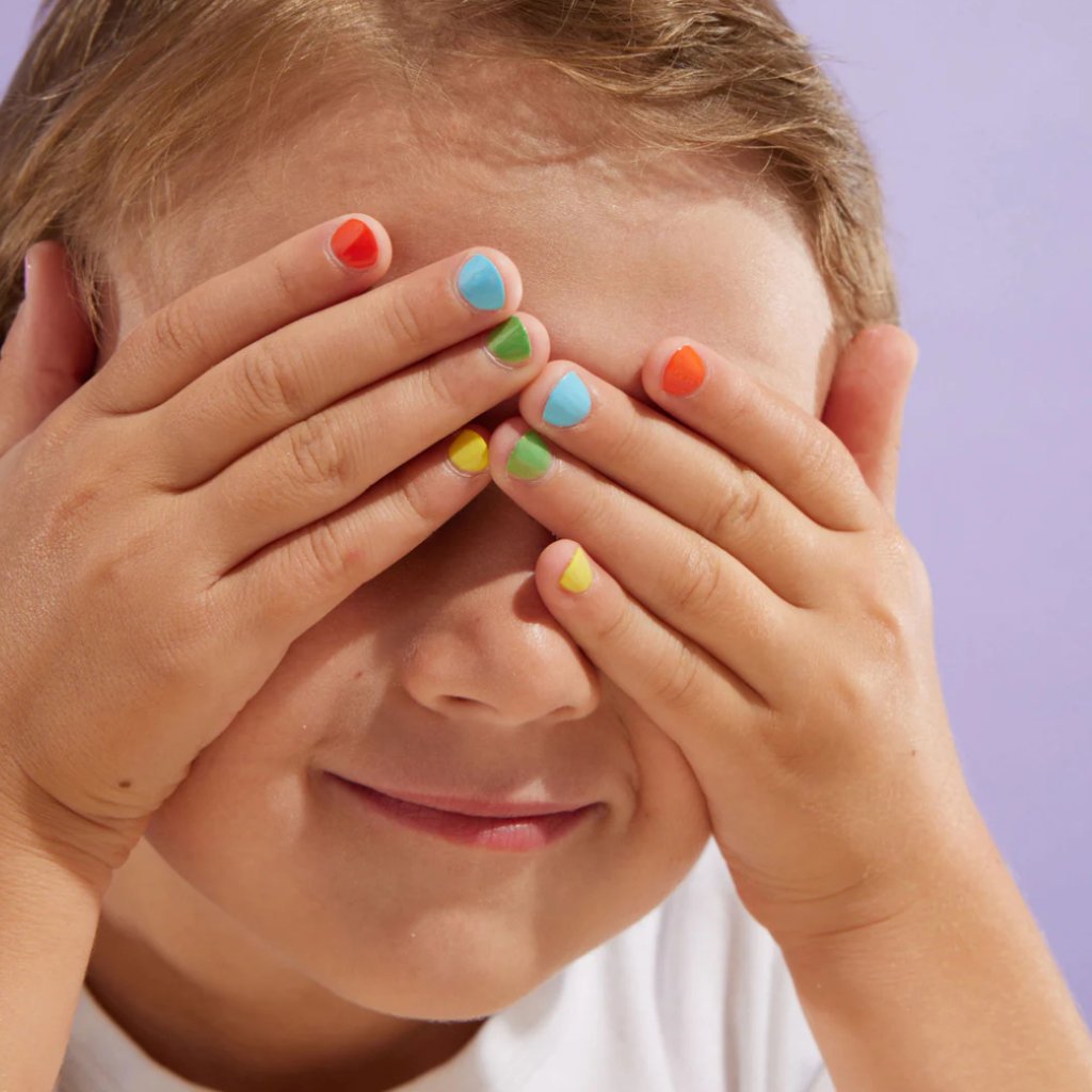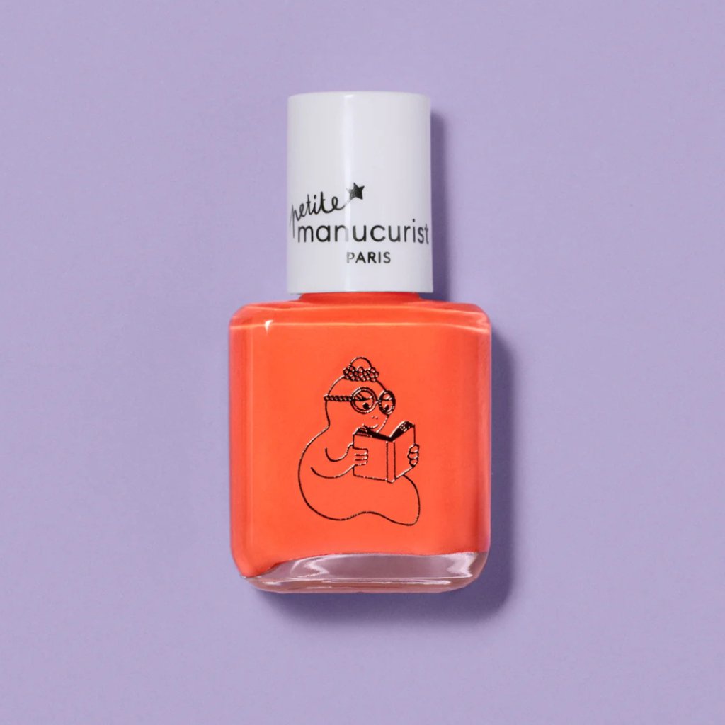 Dětský oranžový lak na nehty, který se snadno smývá mýdlovou vodou.