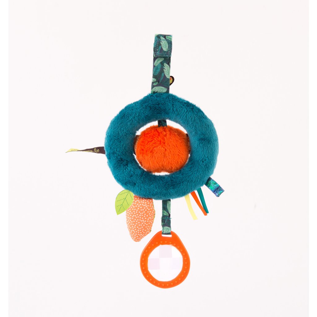Interaktivní kroužek z kolekce Džungle zabaví miminko doma i na cestách. Šustí, chrastí, píská a díky závěsnému poutku ho snadno připevníte na kočárek, autosedačku nebo postýlku.