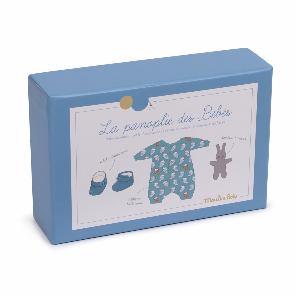 Dárkový set Moulin Roty je splněným snem všech malých pečovatelek a pečovatelů. V krásné krabičce najdou měkoučké dupačky, roztomilé botičky a malého plyšového kamaráda. Ideální doplněk pro hru na maminku nebo tatínka, který dětem pomáhá napodobovat skutečný svět a učí je empatii, starostlivosti a jemnosti v každodenní hře s panenkou.