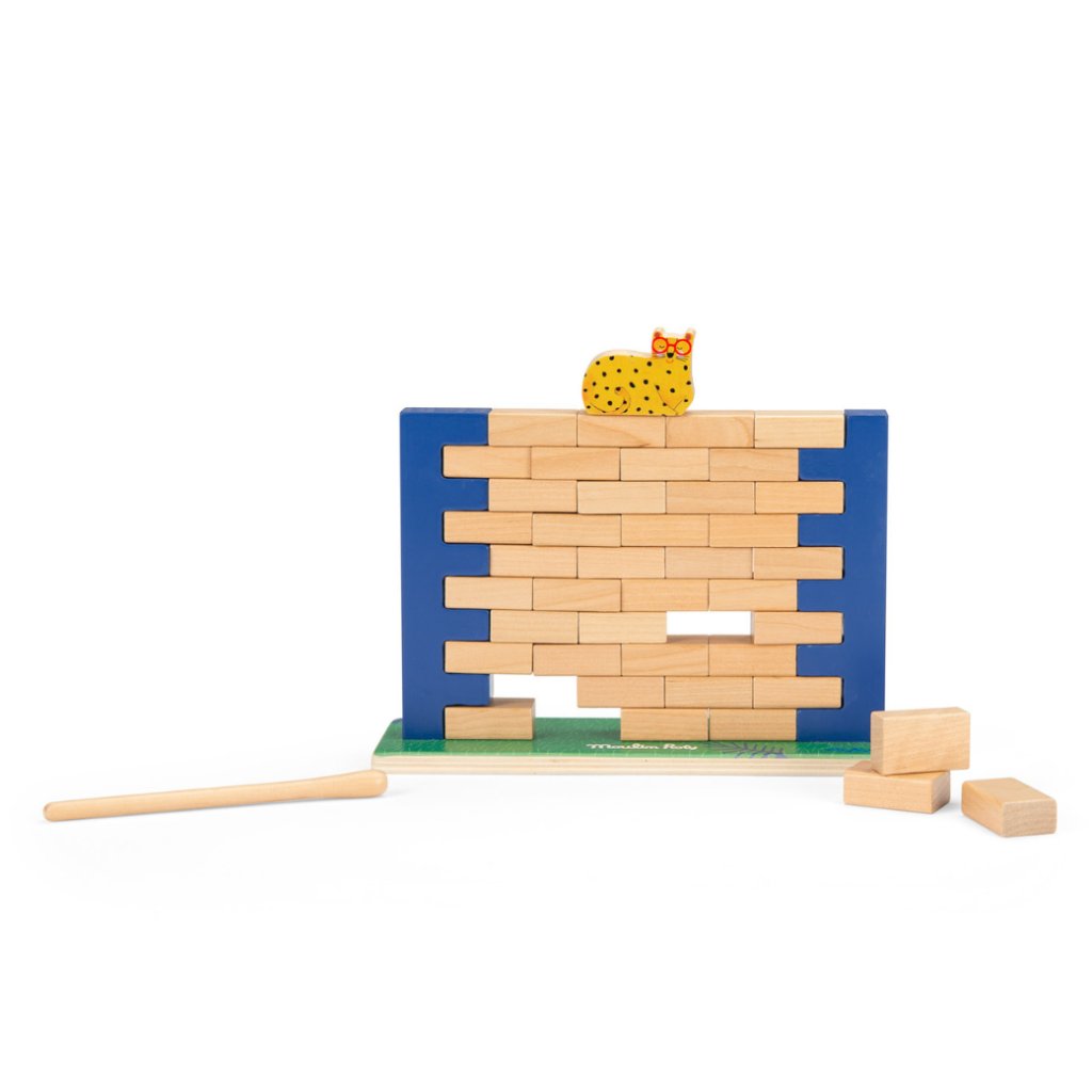 Napínavá a zábavná hra, která prověří šikovnost i trpělivost. Cílem je postupně vytahovat dřevěné cihličky ze zdi, aniž by se celá konstrukce zřítila. Ale pozor – jakmile zeď spadne, probudí se leopardský hlídač a hra končí!