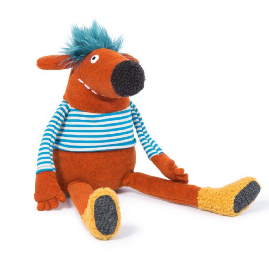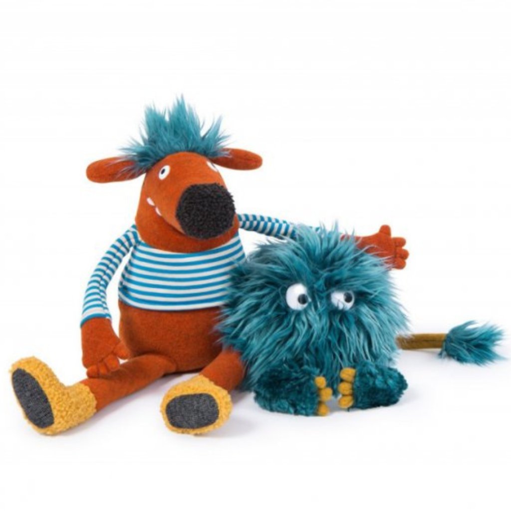 Pidou je veselý plyšový parťák s osobitým vzhledem, který si děti okamžitě zamilují. Má huňatý černý čumák, rozčepýřené modré vlásky a pruhované tričko, které mu dodává styl. Je měkký, mazlivý a vždy připravený na dobrodružství – doma, na výletě nebo večer v postýlce. Pidou není jen hračka, ale opravdový kamarád, který poslouchá všechny dětské příběhy a tajemství.