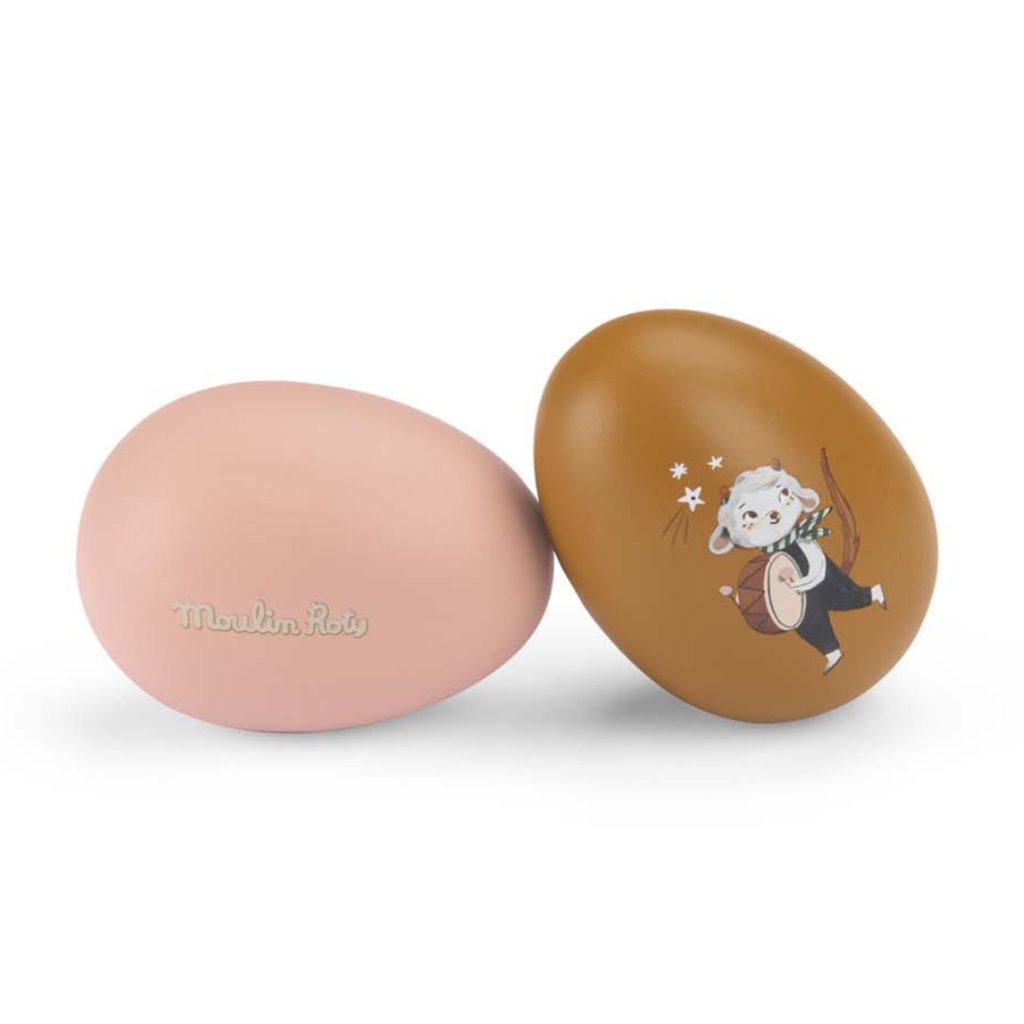 Tyto roztomilé maracas z dřevěných vajíček v jemných růžových a taupe odstínech jsou zdobeny krásnými, poetickými ilustracemi z kolekce Après la pluie, kterou navrhla Lucille Michieli. Díky ergonomické velikosti, navržené speciálně pro malé dětské ruce, jsou ideální pro první hudební experimenty vašich nejmenších.