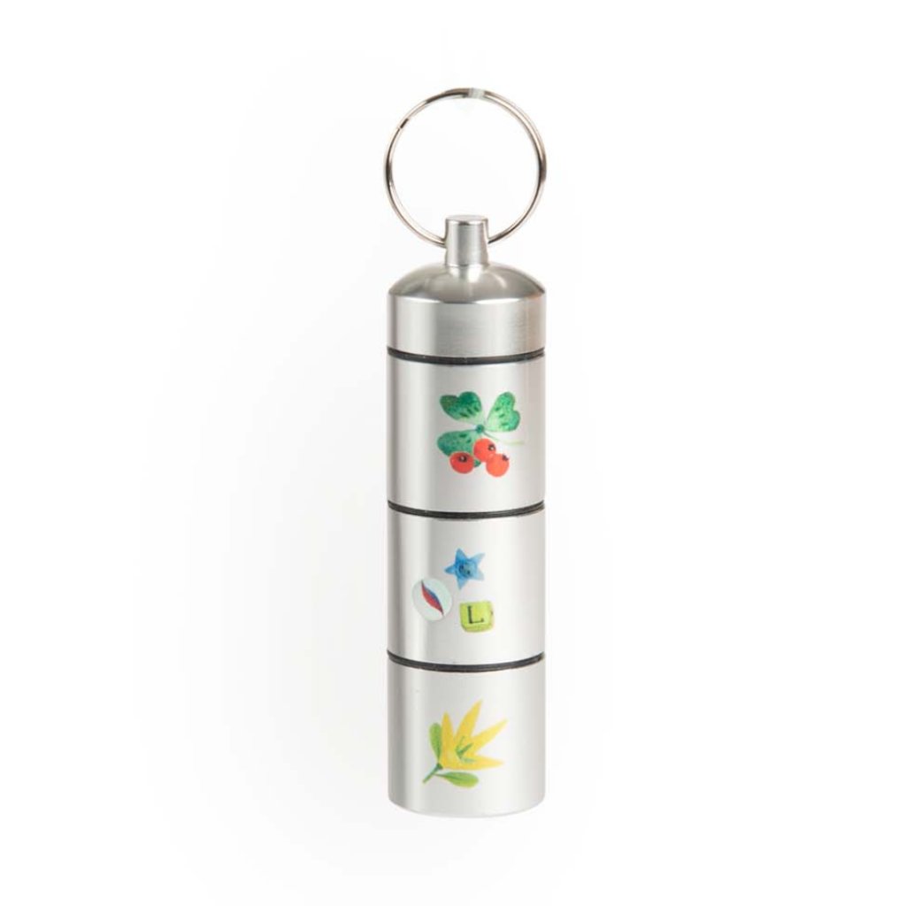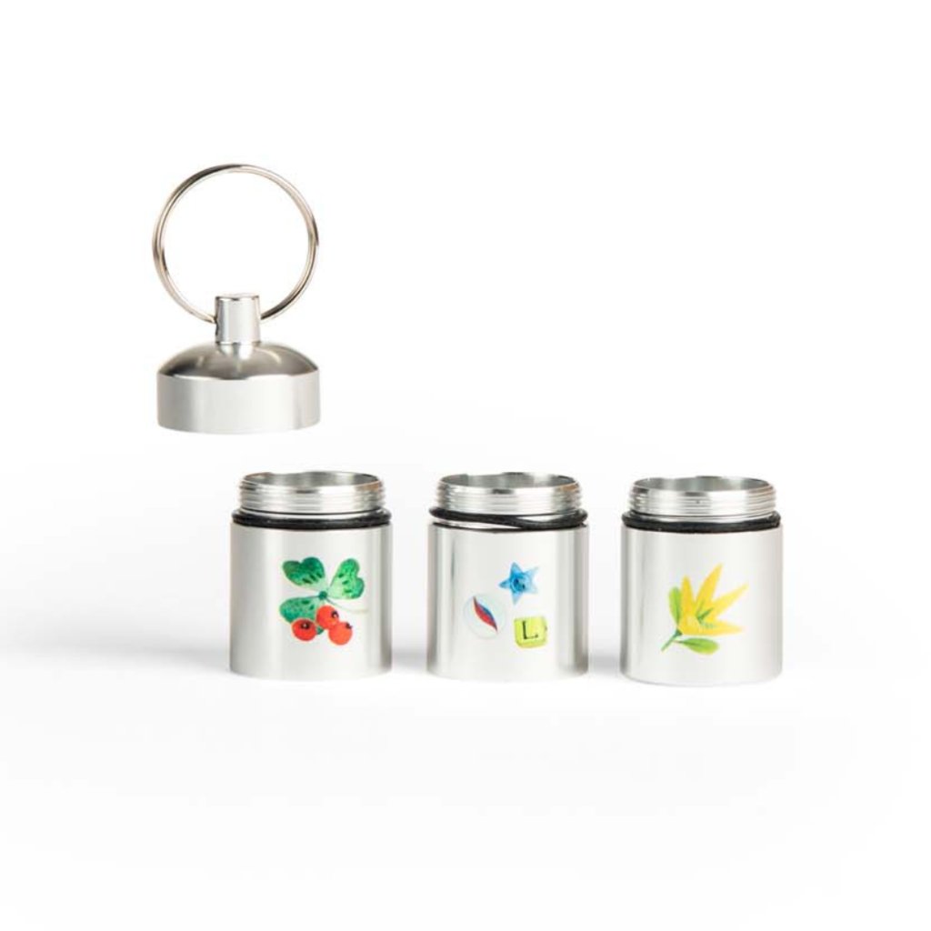 • 1× kovová kapsle se 3 přihrádkami a karabinou