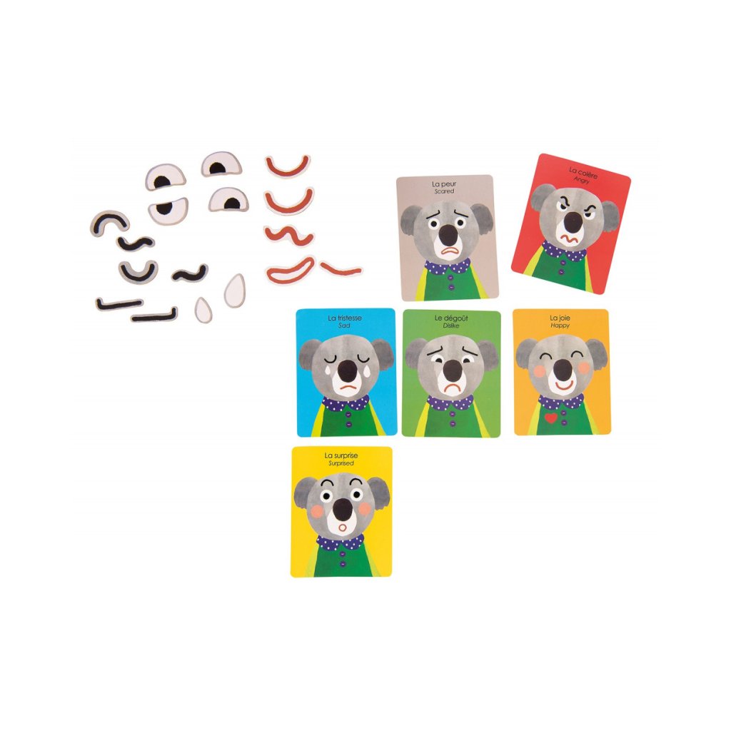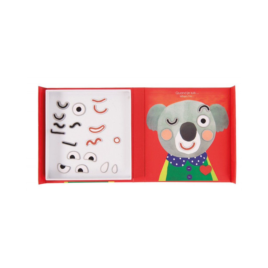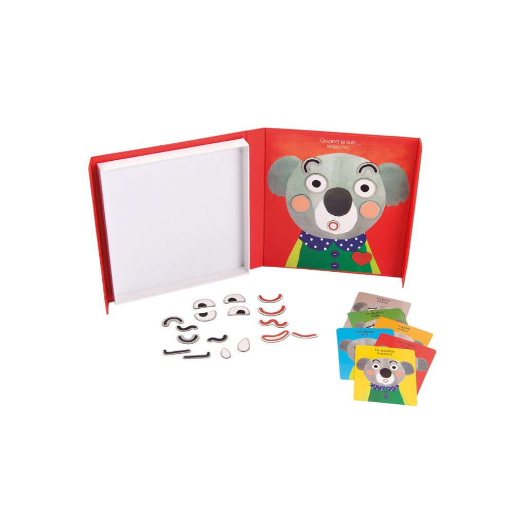Hra obsahuje jednotlivé dílky obličeje, které vykouzlí na magnetické podložce různé emoce. Vše zabalené v praktické krabičce, takže se nic neztratí.