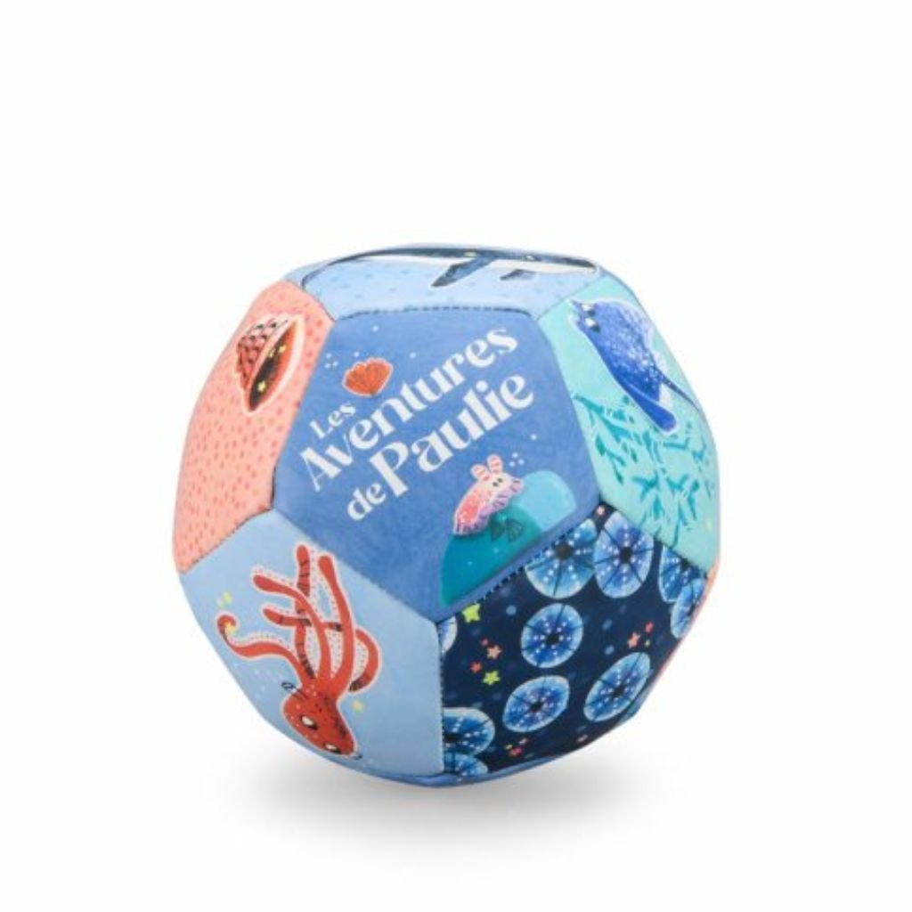 Měkký míček vhodný pro dětské ručičky na hraní uvnitř i venku. Má různobarevné strany s motivem podmořského světa. Vinylová krytina je odolná vůči malým zoubkům a velmi snadno se čistí.