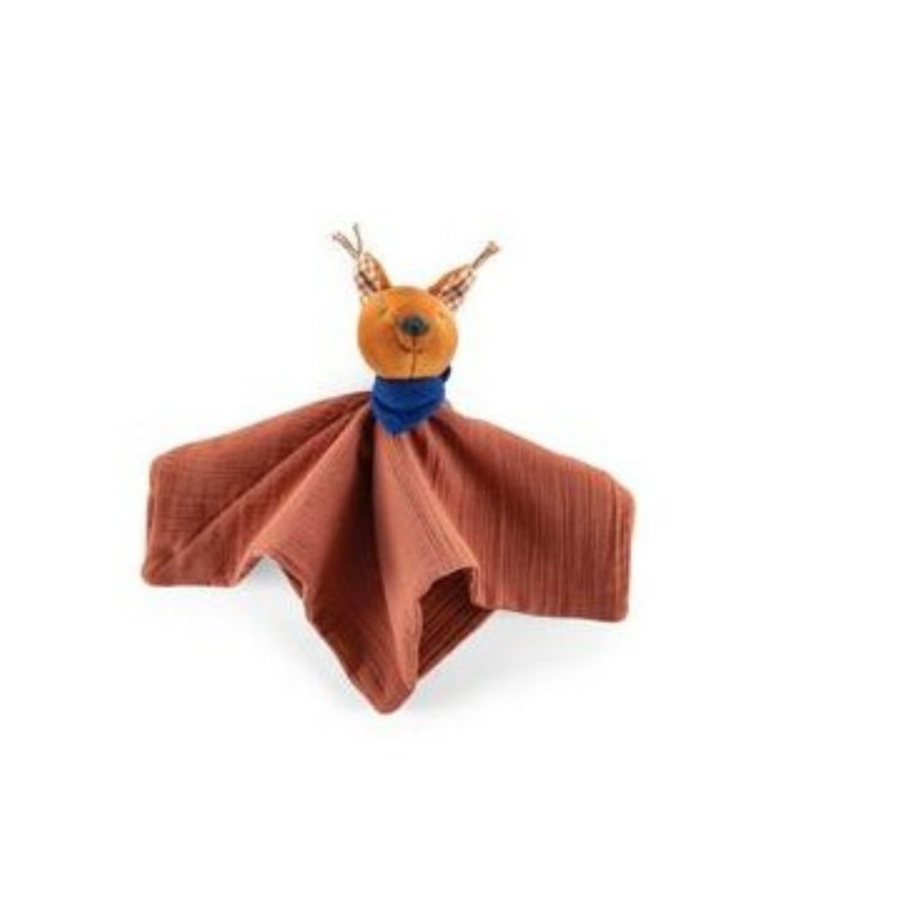 Mazlící mušelínový ubrousek. Tento mazlíček bude nepostradatelnou součástí při každém odpočinku Vašeho děťátka. Jemný materiál a překrásné tlumené barvevné kombinace. Materiál: Bavlna, polyester. Věk od:0+. Rozměry: 17x7x7cm.
