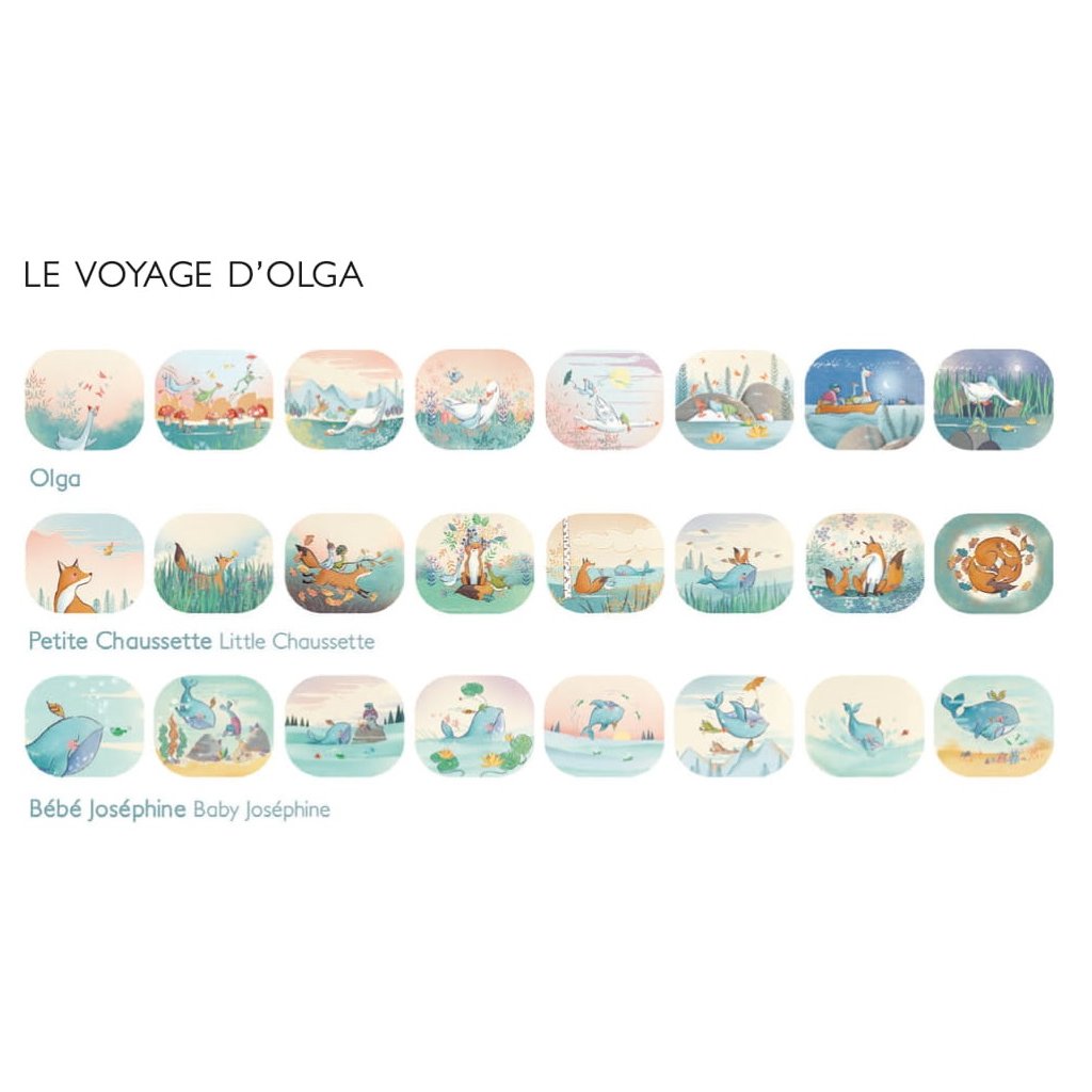 Promítací kotoučky s motivem husy Olgy rozšiřují kolekci pohádkového promítání Moulin Roty. Po vložení kotoučku do promítací baterky se na stěně objeví obrázkové scény, které vtáhnou děti do něžných příběhů Olgy a jejích přátel. Každý kotouček nabízí nový mini příběh, který můžete vyprávět společně.