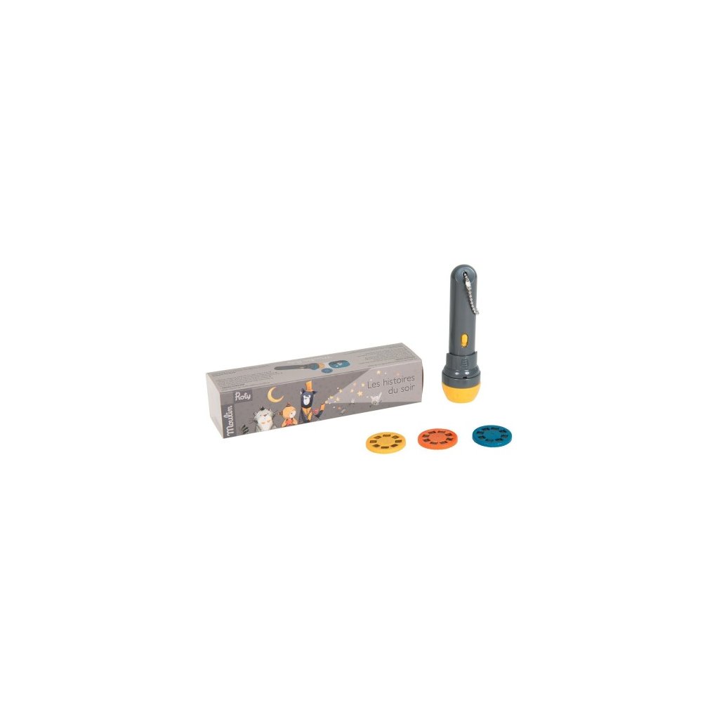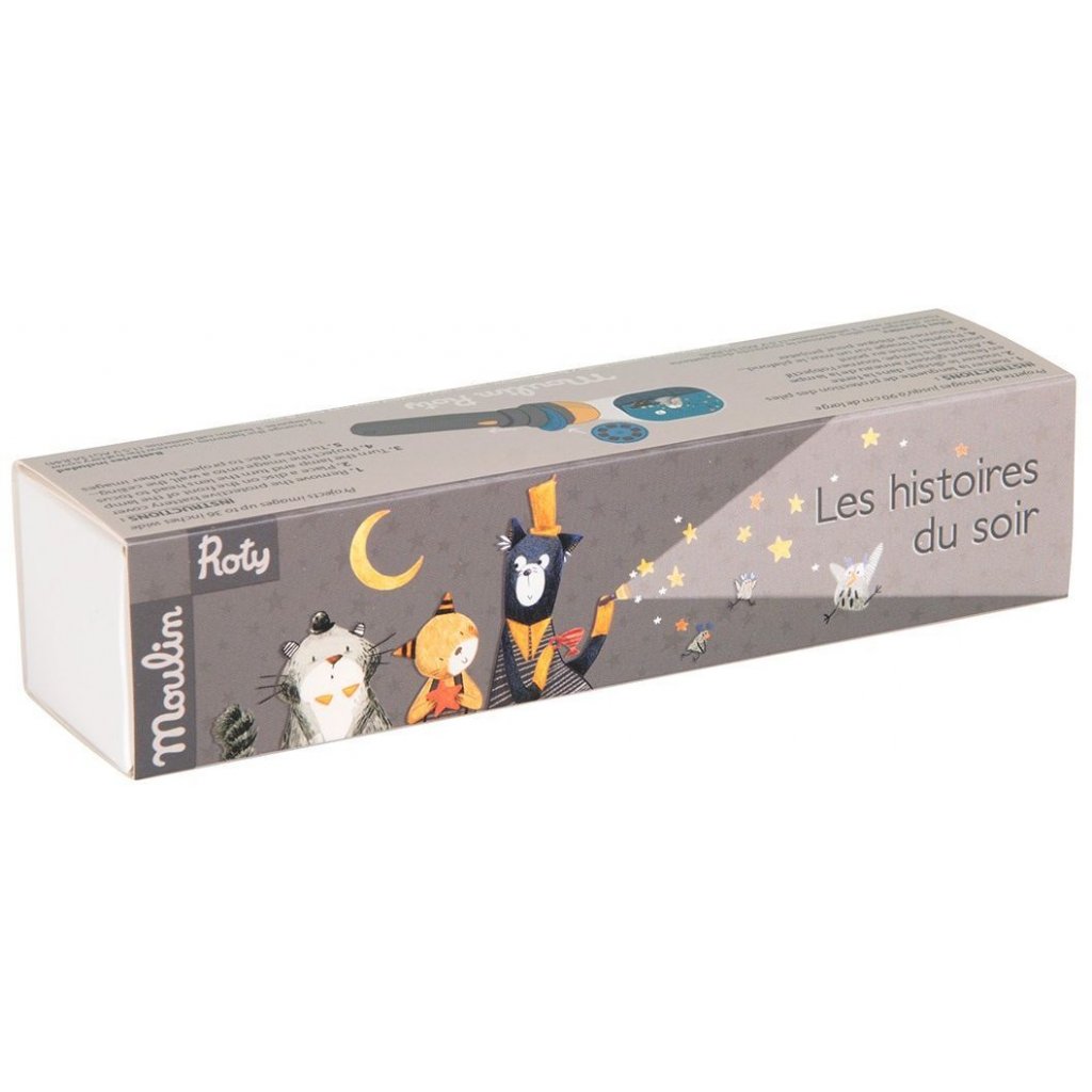 Bestseller od Moulin Routy. Promítací baterka s půvabnými obrázky vám přehraje tři různé příběhy, u kterých si můžete s dětmi v postýlce povídat.