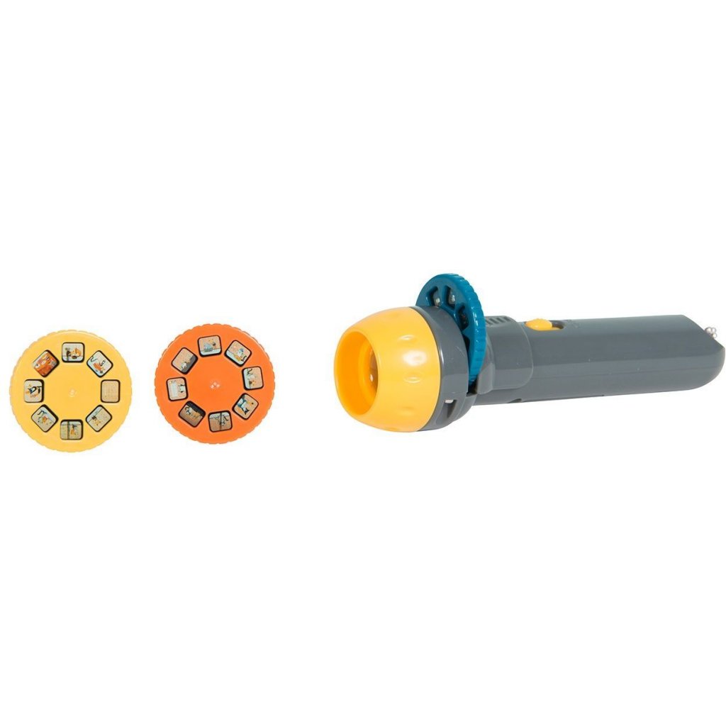 Kapesní baterka o velikosti 12 cm s promítacími kotouči, kterými si na zeď promítnou něžný příběh zvířátek. Obrázky se mění otáčením hlavy promítačky, pro zaostření použijte přední část baterky, pootočením zaostříte obraz. Podněcuje fantazii a mile naladí před usnutím.