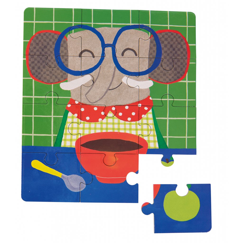 Set tří krásných puzzle s motivy pana Sloníka. Každý obrázek se skládá z 12 dílků.