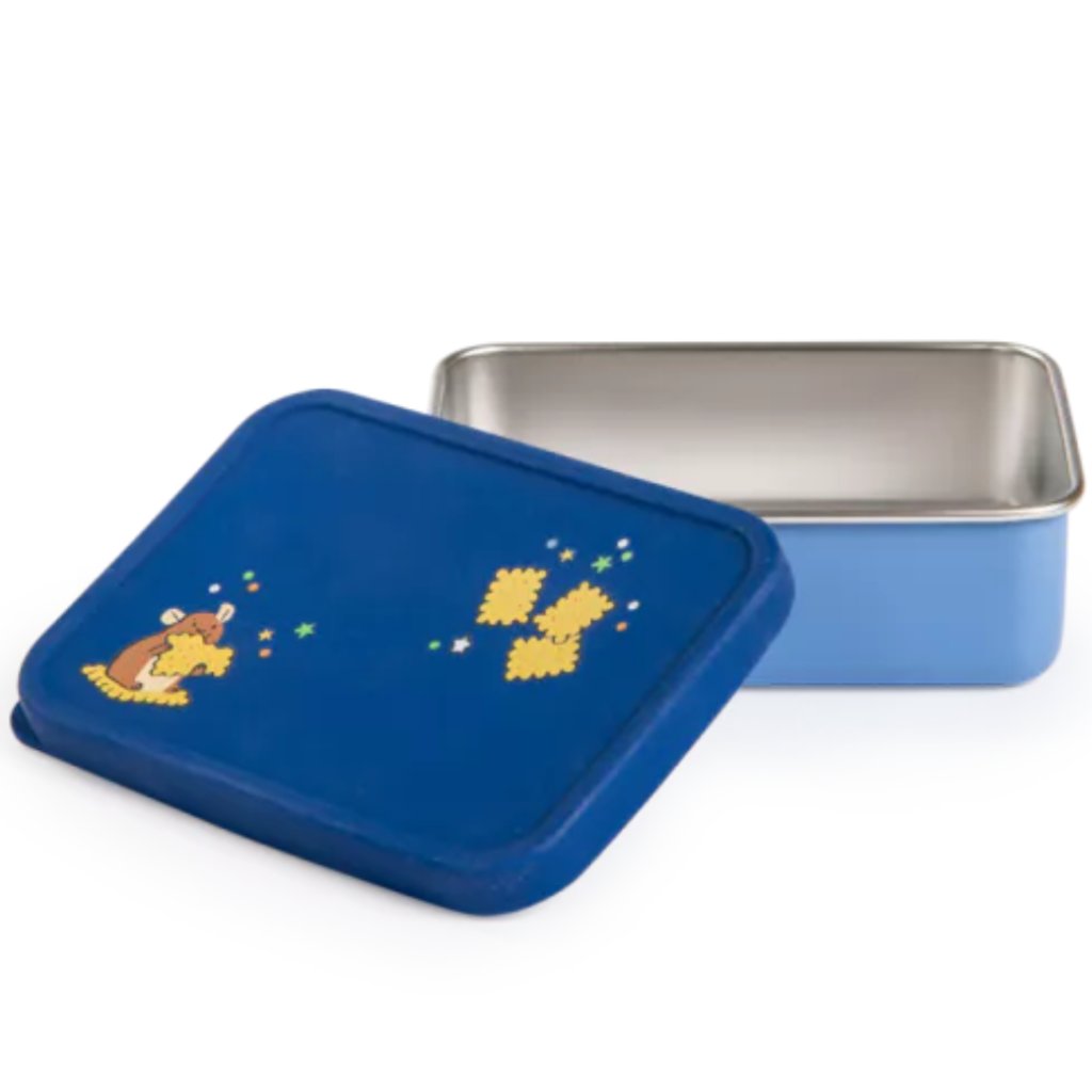 Krásný svačinová krabička Puce a Pilou z nerezové oceli s víčkem ze silikonu. Dokonale těsní, snadno se vejde do tašek pro nejmenší.