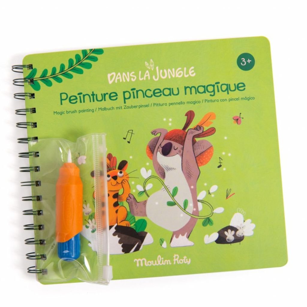 Kouzelná omalovánková knížka, která dětem ukáže, že malovat lze i bez barev a nepořádku. Stačí naplnit štětec vodou a přejet po stránce – skryté obrázky z džungle se začnou objevovat jeden po druhém! Po uschnutí barvy zmizí a zábava může začít znovu.