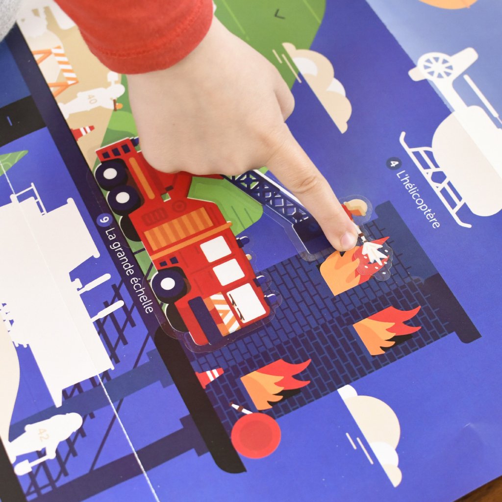 Dětský vzdělávací plakát (1 m x 68 cm) + 44 samolepek. Plakát vytištěný na obou stranách (1 strana ve francouzštině, 1 strana v angličtině) je doplněn o přemístitelné samolepky. Dítě nalepí na plakát 44 velkých samolepek podle uvedených čísel.