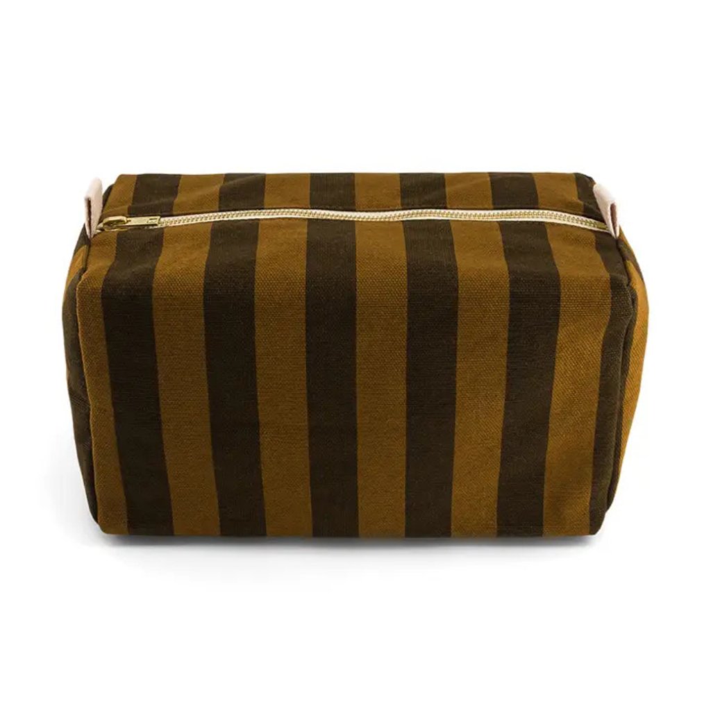 Vic Toiletry Bag v pruhovaném designu Stripes Cumin a s jemným „washed“ efektem kombinuje ležérní styl s funkčností – ideální na kosmetiku, cestování i dětské potřeby.