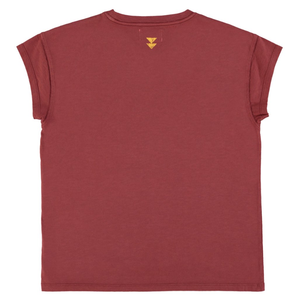 Tričko s krátkým rukávem a kulatým žebrovaným výstřihem je vyrobené z bavlny typu flammé. Přední stranu zdobí potisk, zatímco na zadní části u krku nechybí malé logo. Příjemný materiál zajišťuje pohodlí při každodenním nošení.