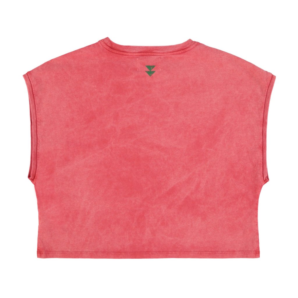 Bezrukávové tričko z bavlny typu flammé je navržené s kulatým výstřihem, žebrovanými lemy a potiskem na přední straně. U krku na zadní části nechybí malé logo. Kratší střih podtrhuje moderní, uvolněný vzhled.