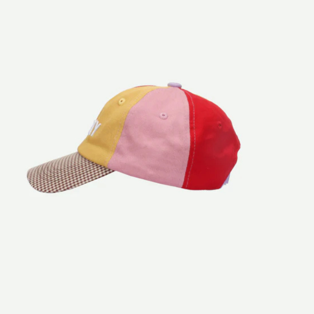 Kombinace barev, gingham vzoru a výšivky na přední straně dodává kšiltovce jedinečný charakter.