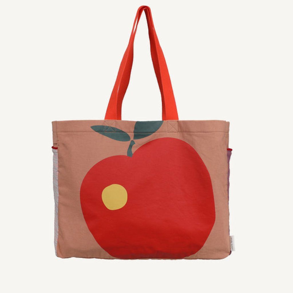 Prostorná taška s výrazným colorblockingem a hravým jablíčkovým motivem okamžitě zaujme. Díky velkému objemu a bočním kapsám se zapínáním na knoflík nabízí dostatek místa i přehledné uspořádání všech nezbytností.